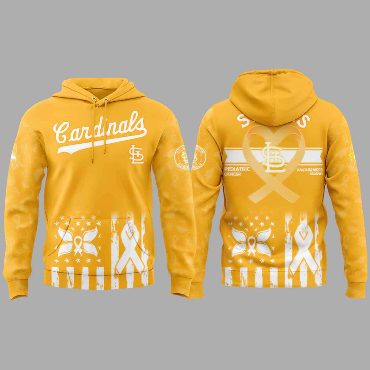 Show your support for a vital cause with the 2025 Cardinals x Pediatric Cancer Awareness Month Hoodie. This limited-edition hoodie is designed in collaboration with the St. Louis Cardinals to raise awareness for pediatric cancer. Sporting bold and meaningful symbols, including yellow ribbons and other powerful designs, this hoodie is not just a piece of apparel, but a statement of hope and solidarity for children battling cancer.