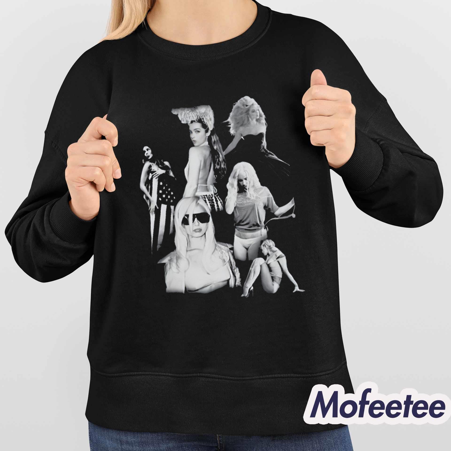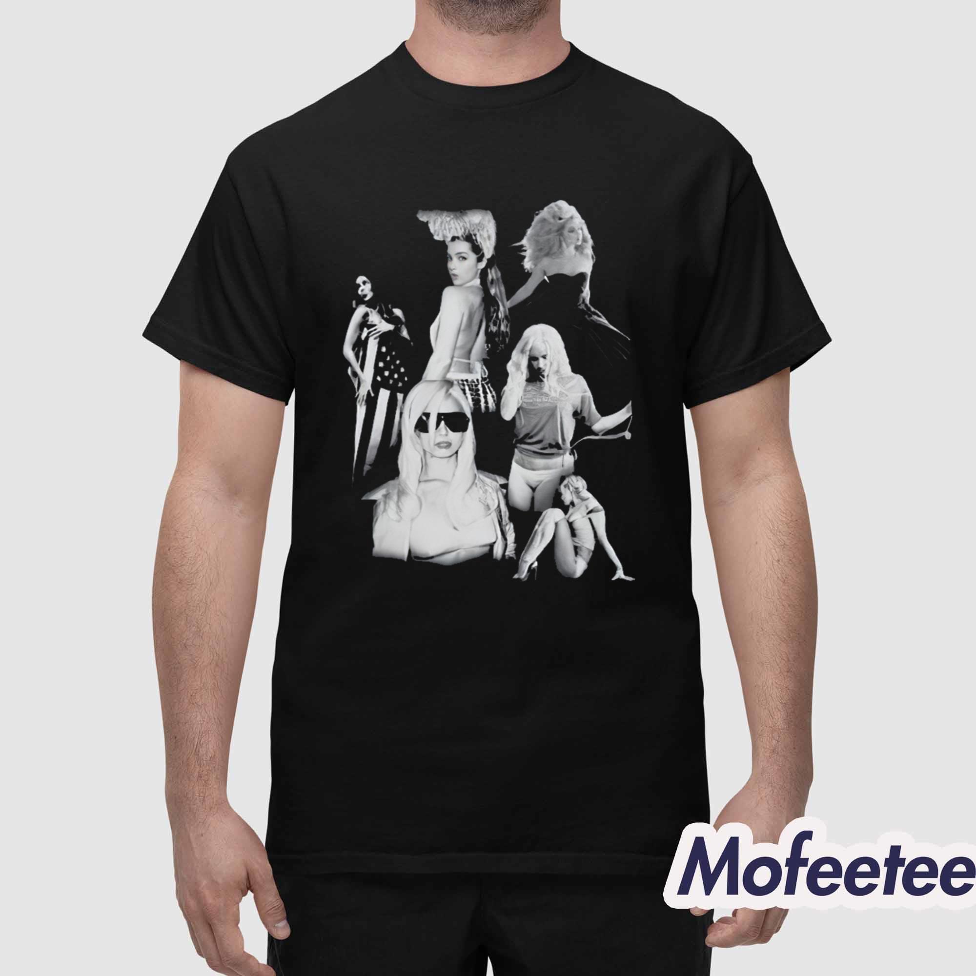 The shirt is designed to showcase Addison Rae’s most iconic looks in a powerful collage format. Featuring a series of bold black-and-white portraits printed front and center, this shirt captures her vibe—confident, glamorous, and unapologetically fierce. From classic poses in American flag pants to sleek, sultry glam shots, this tee serves as a tribute to her image as a pop star, fashion muse, and cultural phenomenon.