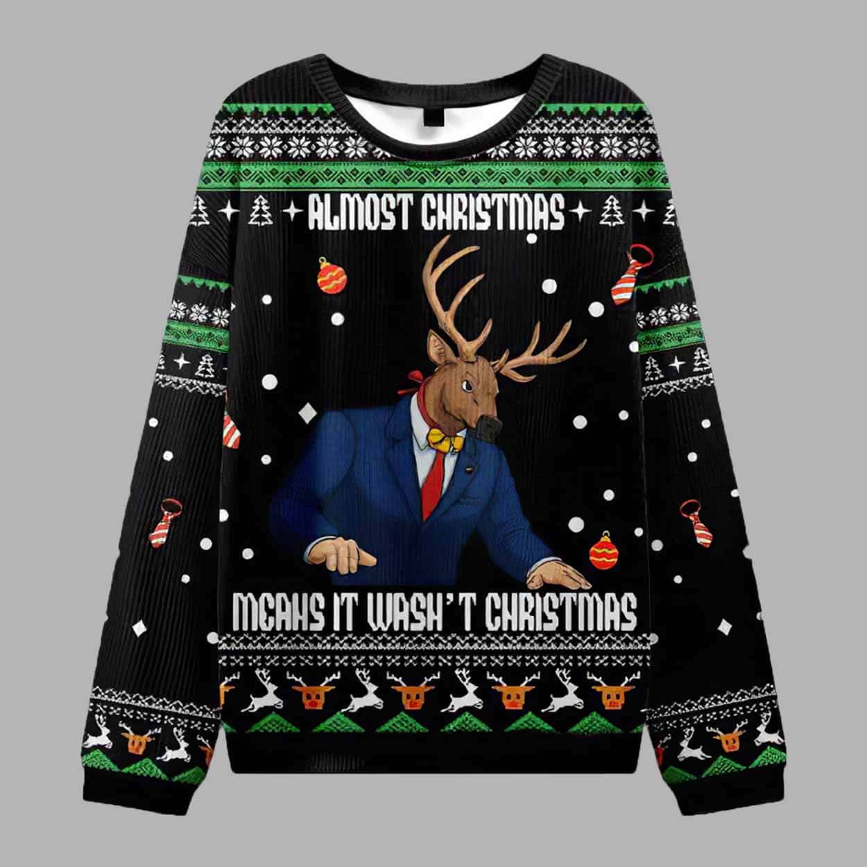 Elevate Your Style with Almost Christmas Mcaus It Wasn’t Christmas Reindeer Man Ugly Sweater