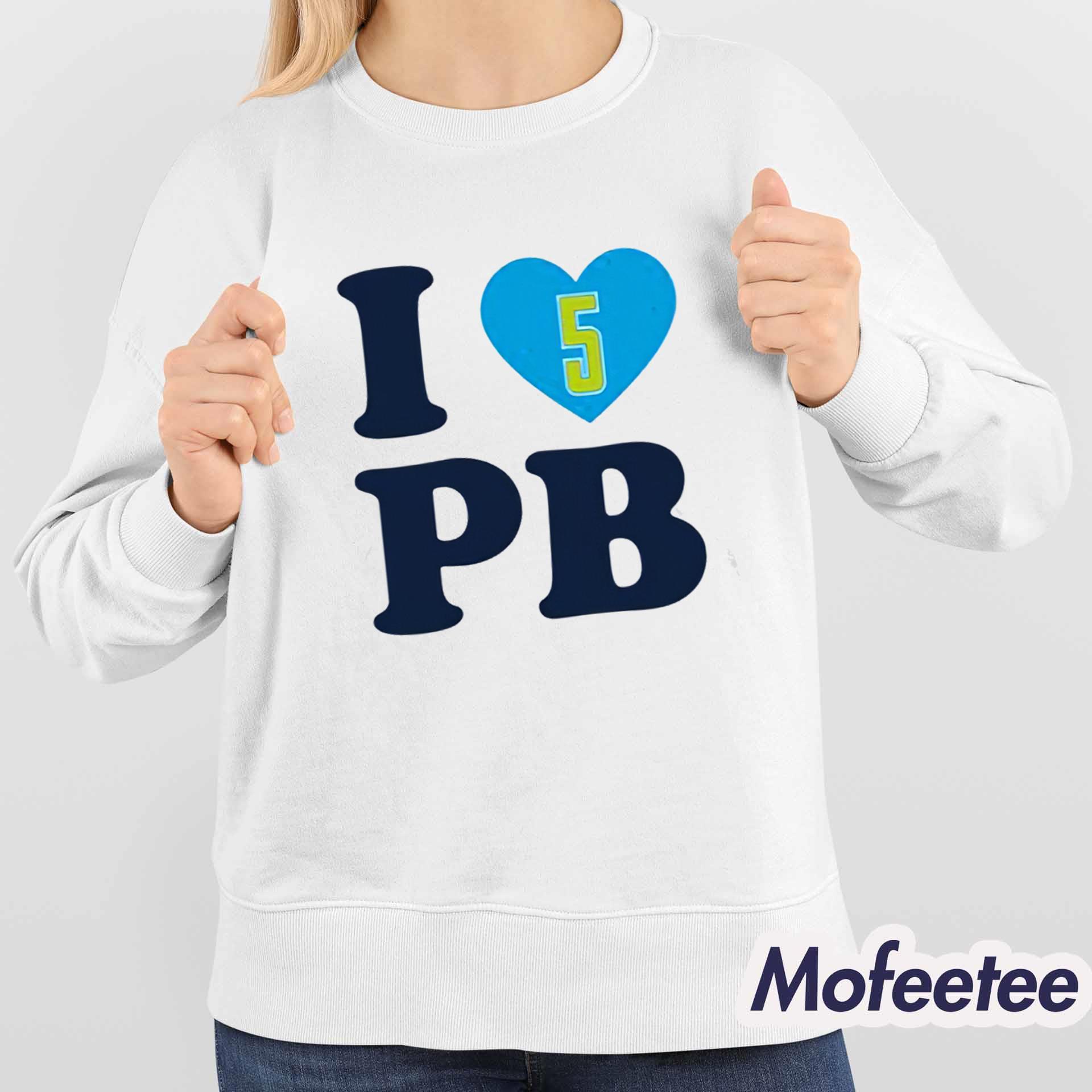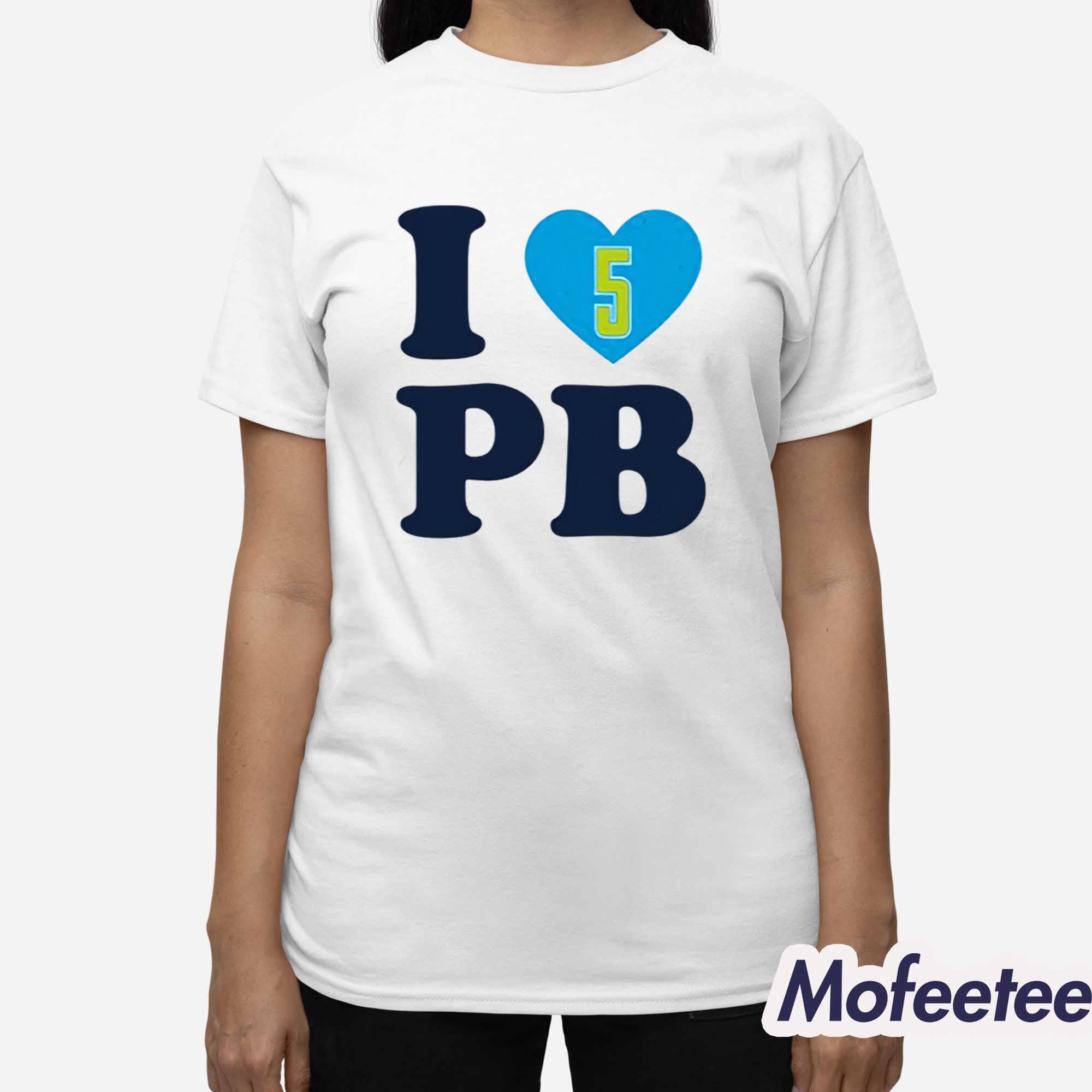 The shirt is a perfect blend of sport and sentiment. The design features the phrase “I LOVE PB” with the heart filled by a bold number 5 — Paige Bueckers’ iconic jersey number. Printed in navy and sky blue on a classic white tee, this design pops with clean, modern flair and lets the world know exactly where your basketball heart lies. Whether you’re courtside or couch-side, it’s a proud expression of your fandom.