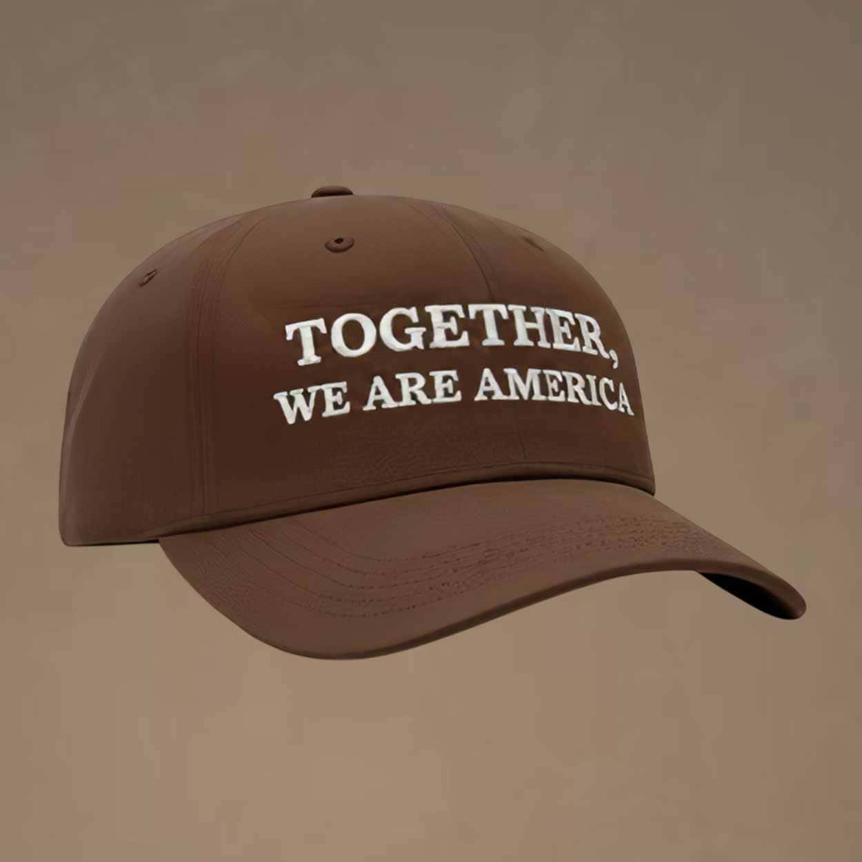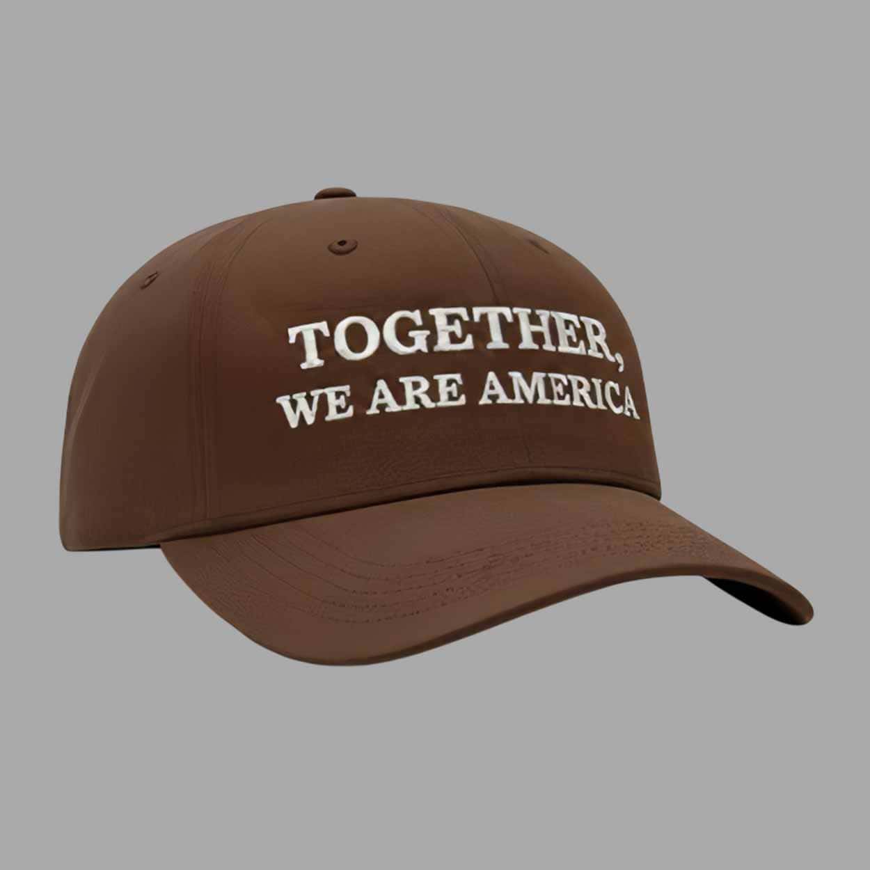 The front of the hat features clean, well-defined embroidery that clearly displays the message “Together, We Are America.” The stitching is carefully crafted to ensure durability and sharp detail, helping the design stay crisp even after extended wear. The neutral yet stylish color makes this hat easy to pair with a wide range of outfits, from casual tees and hoodies to jackets and denim.