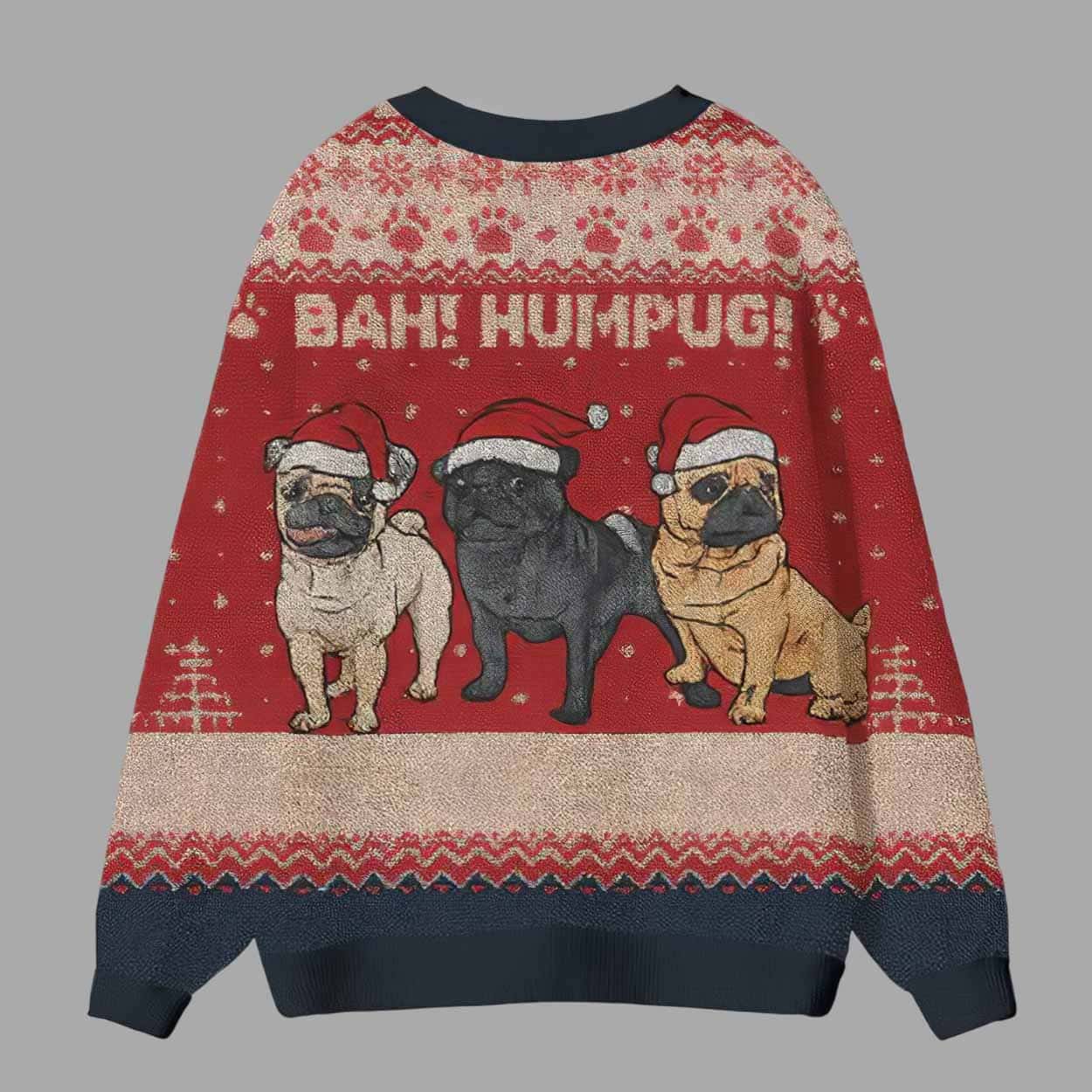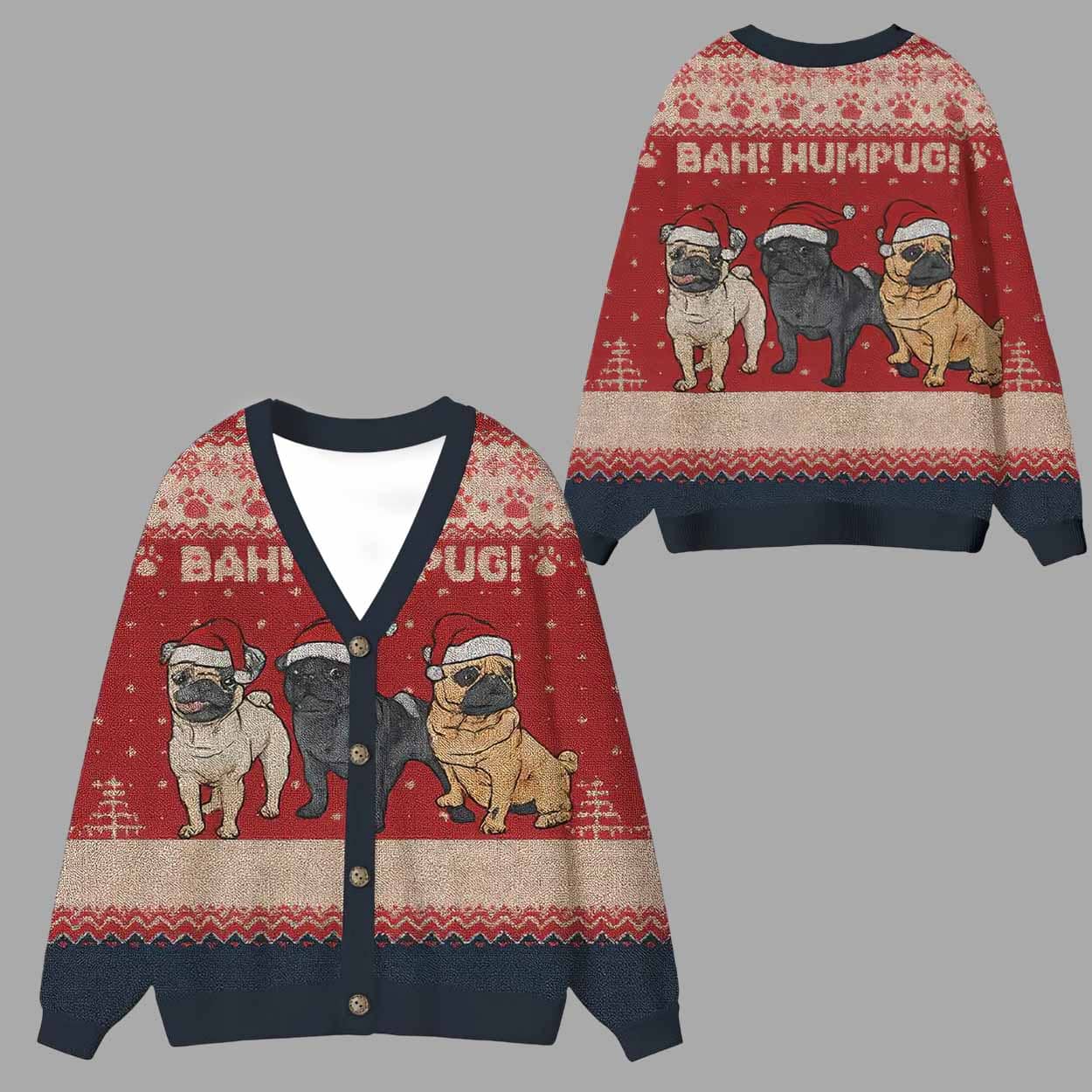 A Festive Must-Have for Pug Fans Bah Hum Pug Dog Lovers Ugly Cardigan Sweater