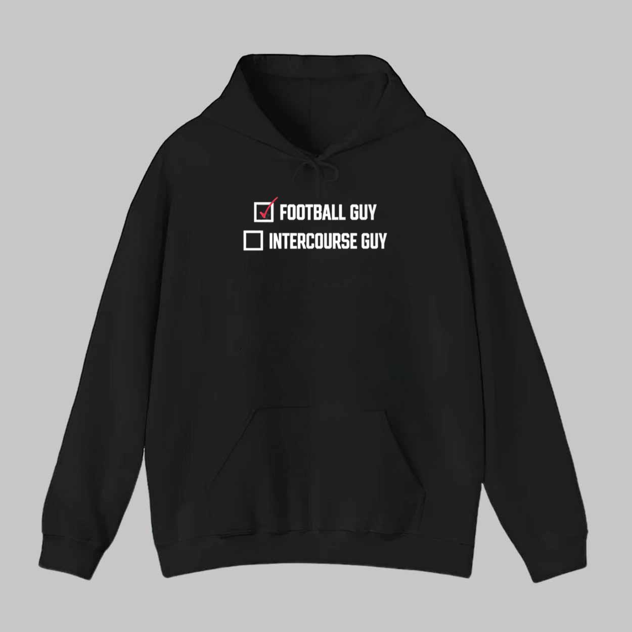 The design itself is simple yet impactful, featuring two checkboxes: one marked “Football Guy” and the other labeled “Intercourse Guy.” The humor and style are sure to make this shirt a conversation starter wherever you go. This shirt isn’t just for Barstool fans; it’s for anyone who enjoys a good laugh and wants to show off their fun side.
