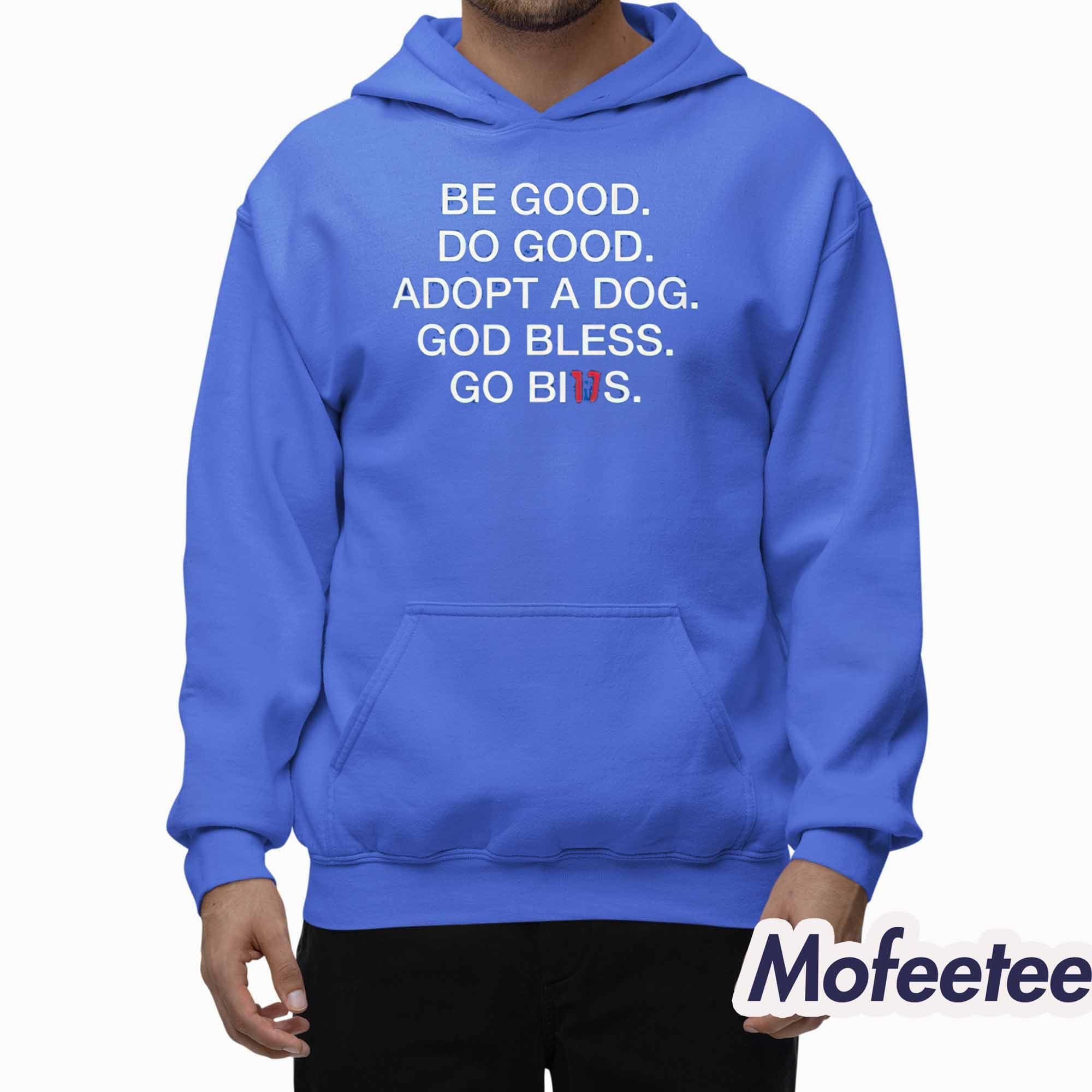 Show your love for kindness, compassion, and your favorite football team with the Be Good Do Good Adopt A Dog God Bless Go Bills Shirt. This shirt perfectly blends meaningful life values with your passion for the Buffalo Bills, making it more than just apparel—it’s a statement piece.