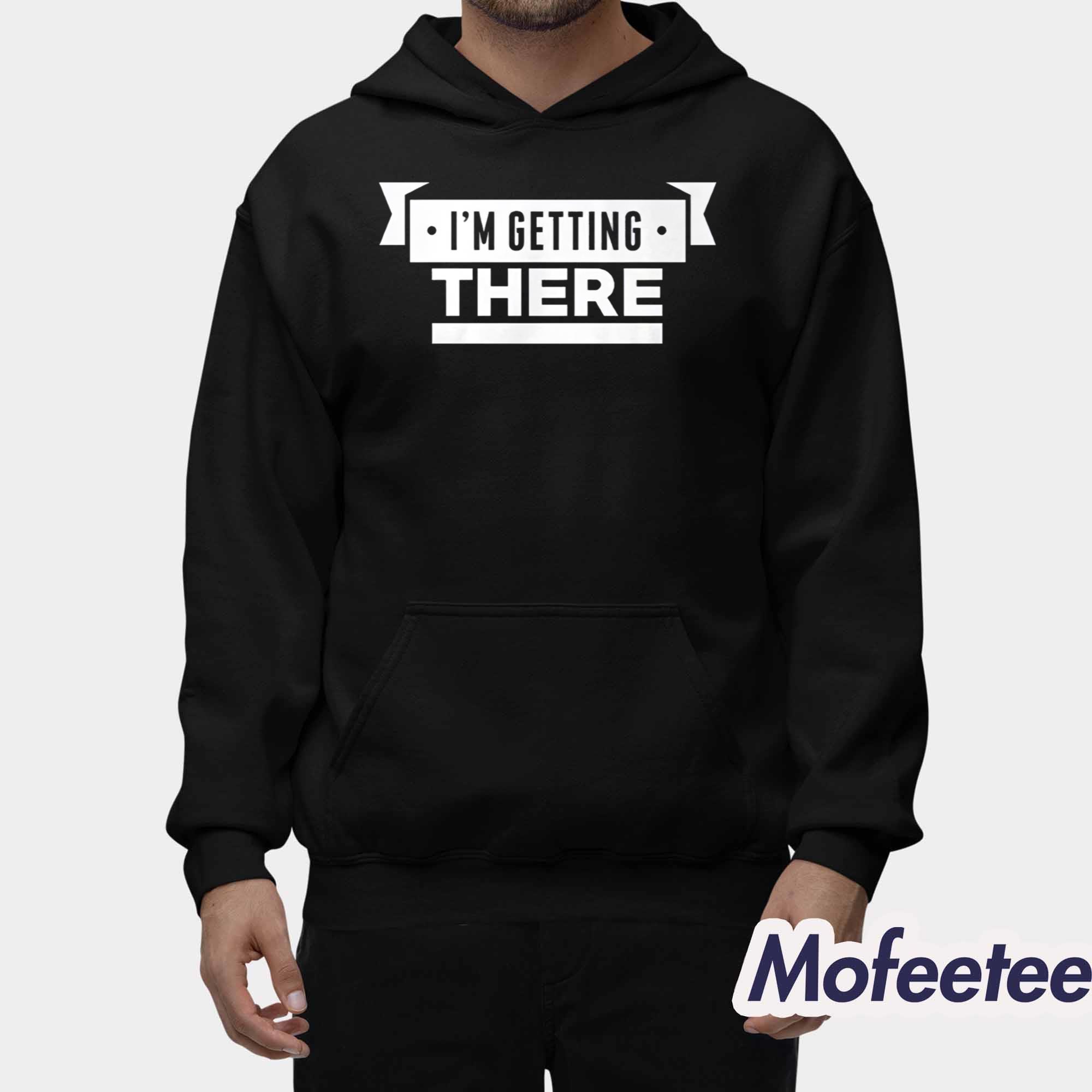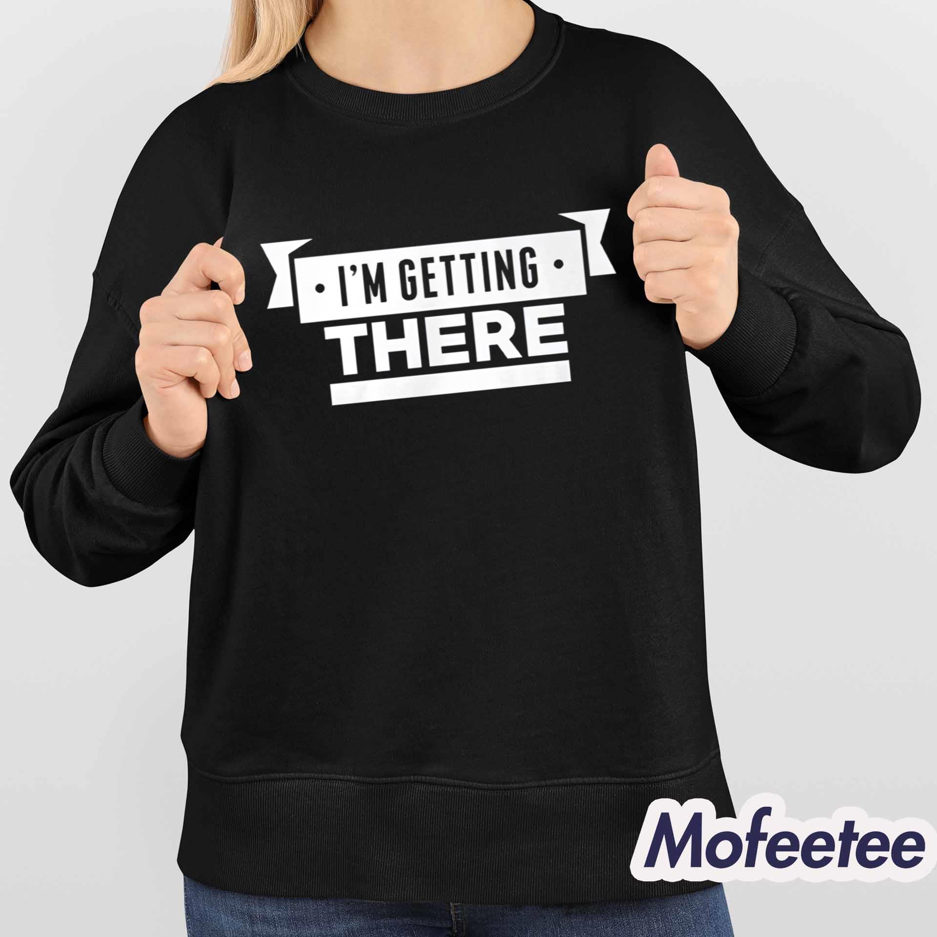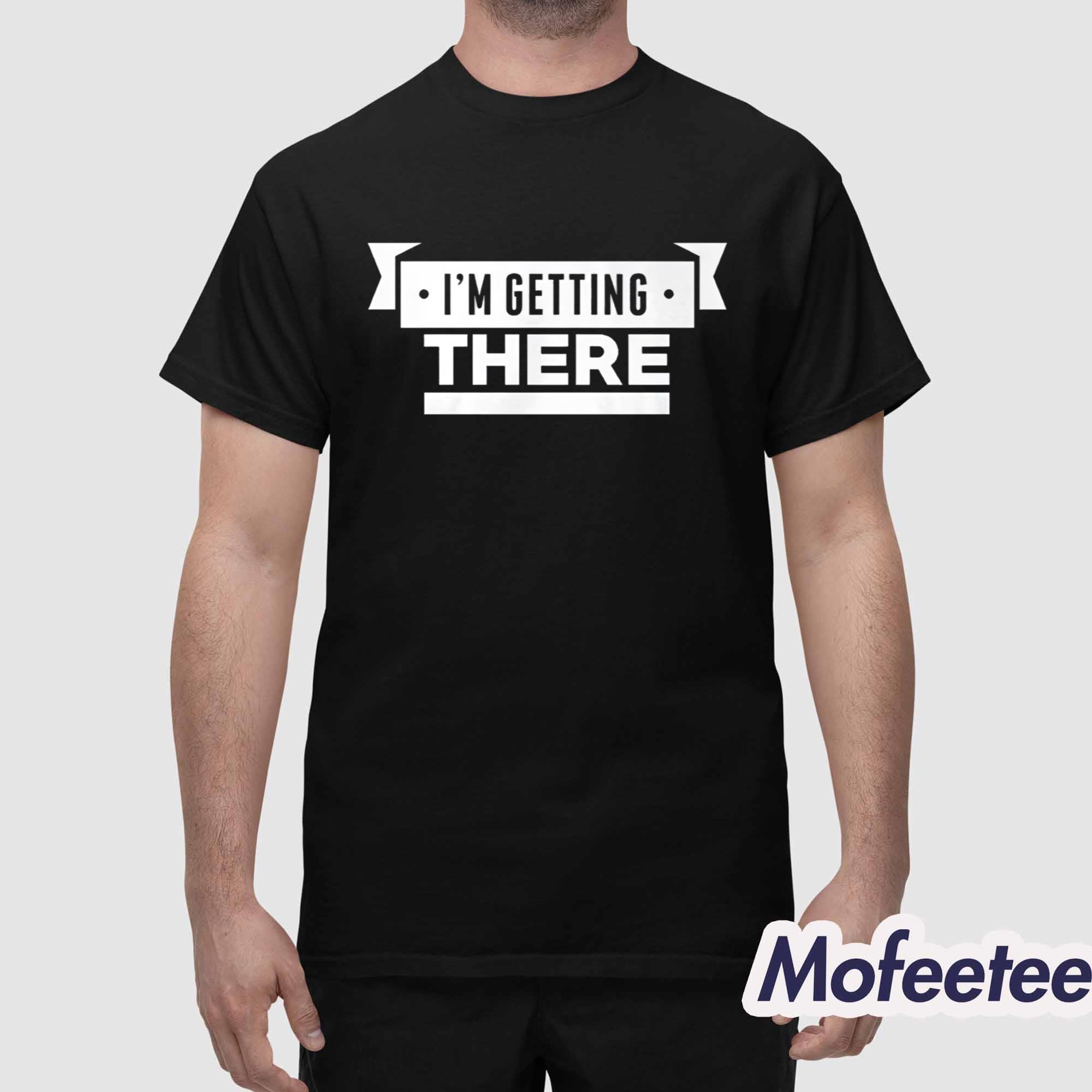 The shirt speaks volumes with its minimalistic yet impactful design. Printed in bold white font across a black background, the phrase “I’M GETTING THERE” is set in a layered, banner-style layout that emphasizes determination without shouting. It’s a wearable affirmation—a reminder that progress is progress, no matter how small.