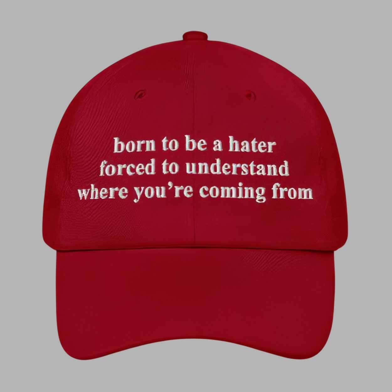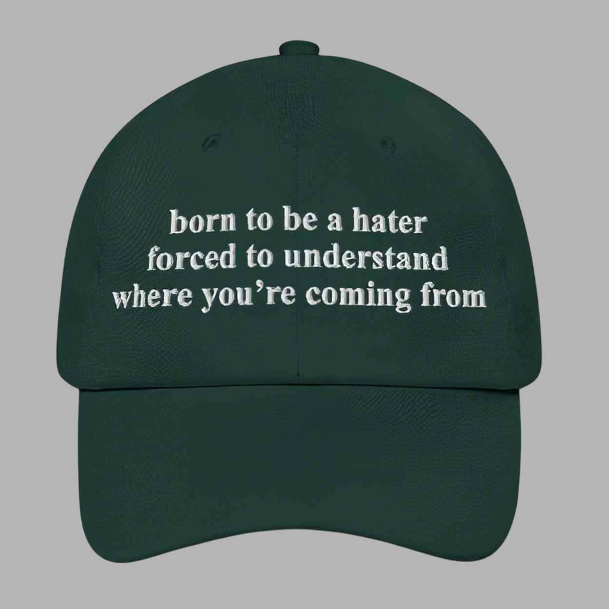 With its bold embroidered message and versatile design, the Born To Be A Hater Forced To Understand Where You’re Coming From Hat is perfect for anyone who likes to mix humor, personality, and practicality into their fashion.