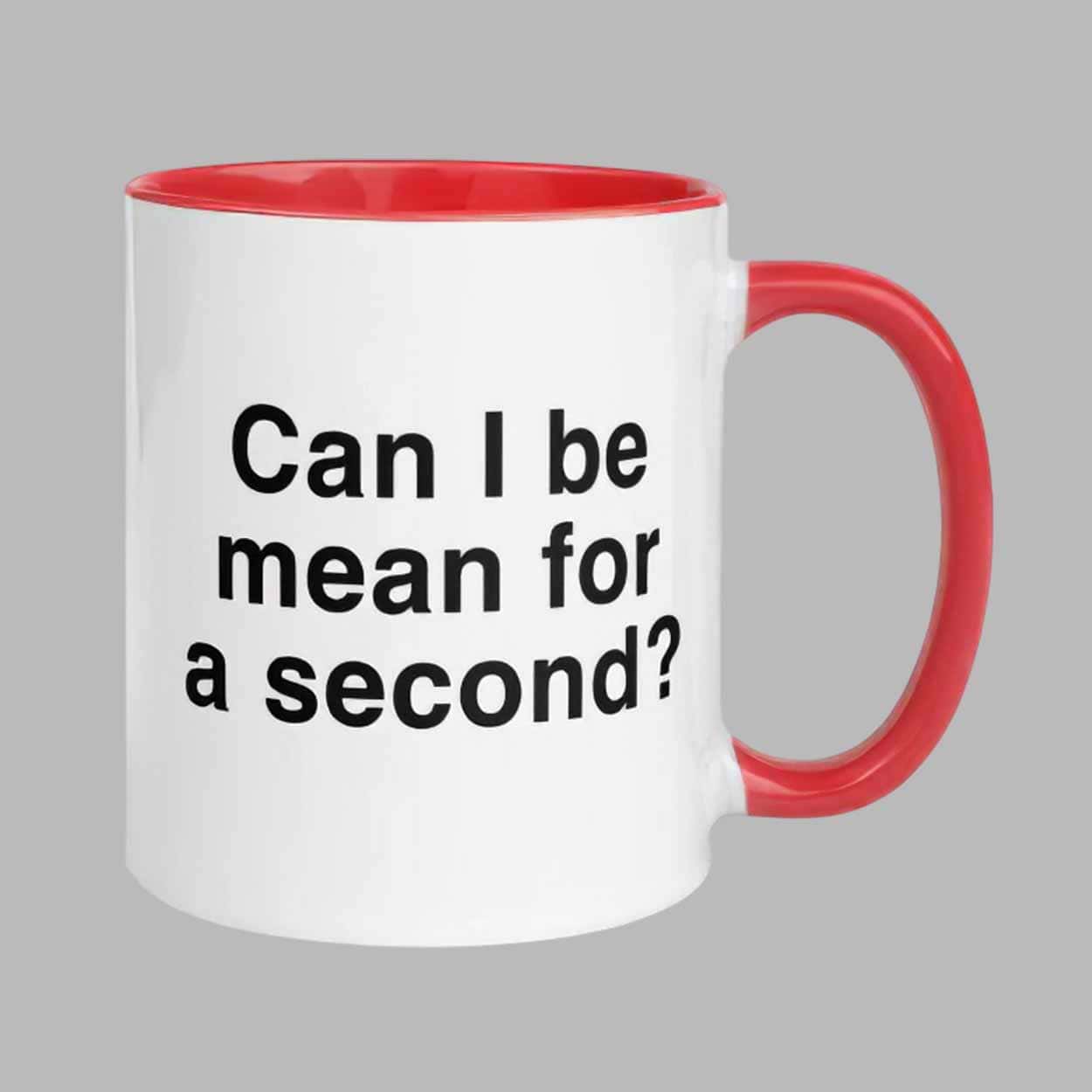 Whether you’re at home, in the office, or giving it as a gift, the mug adds a dose of wit to every cup of coffee, tea, or cocoa. It’s your daily reminder that a little attitude pairs perfectly with caffeine. Features the funny quote “Can I be mean for a second?” in large, easy-to-read font that makes everyone smile (or squirm). Glossy Finish: Smooth, polished surface adds a sleek touch while protecting against scratches.