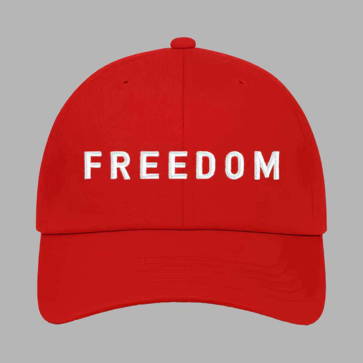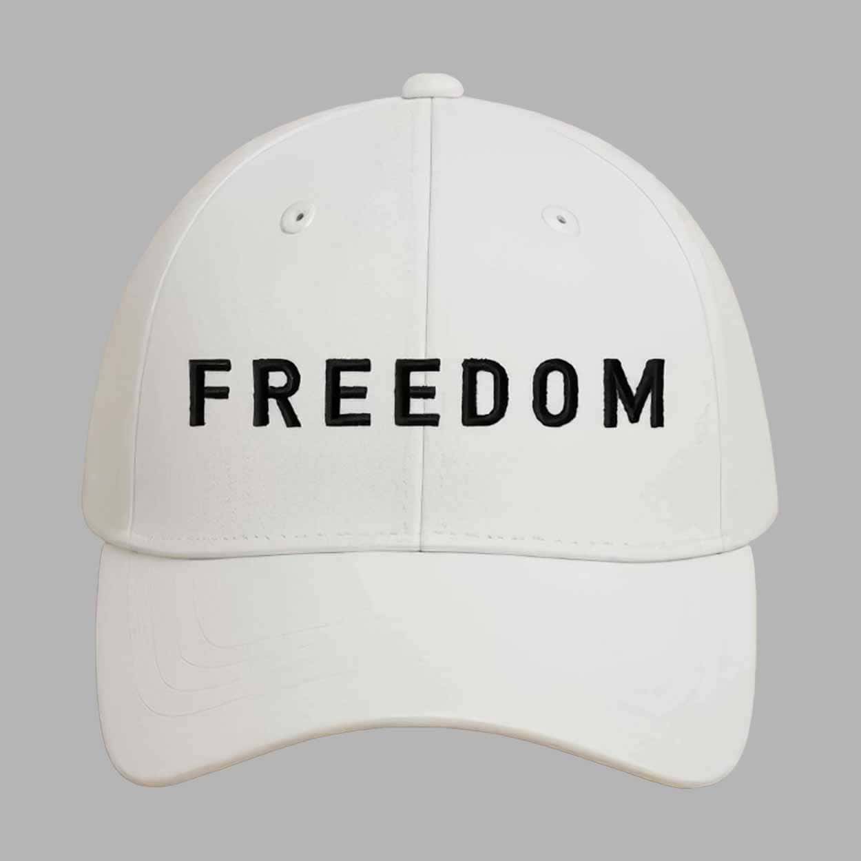 The hat is made from high-quality, durable cotton, offering comfort and breathability. The black cap features the word “FREEDOM” embroidered in bold, white letters, creating a simple yet impactful design. This minimalist design ensures that the message stands out without overwhelming the overall look of the hat.