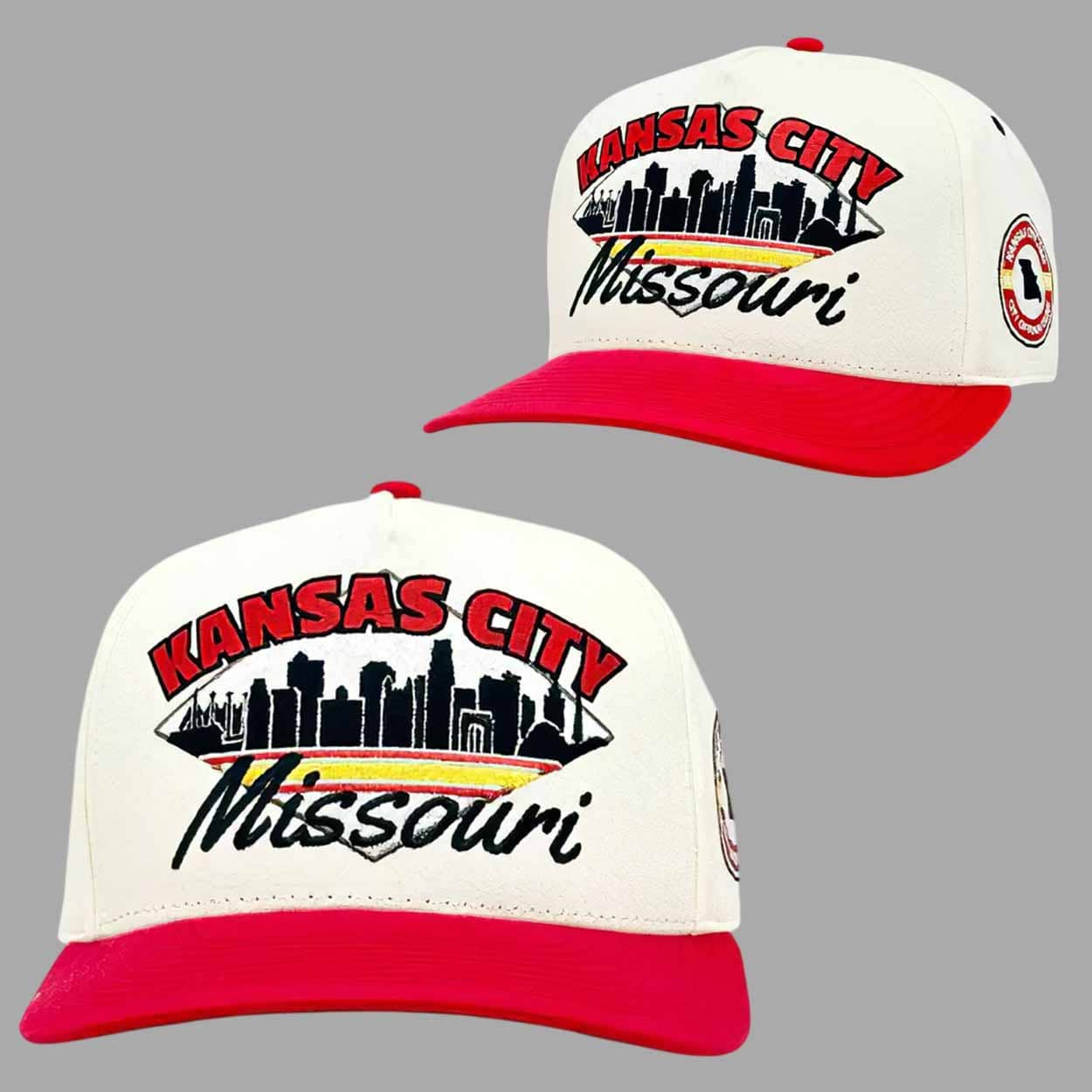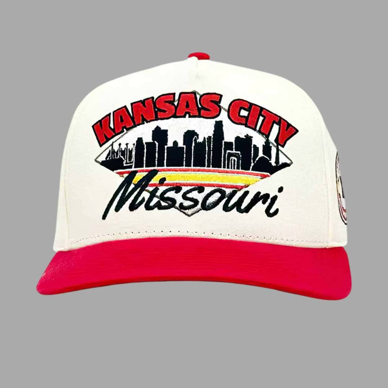 This hat features a beautifully embroidered “Kansas City Missouri” design, highlighted by a clean skyline silhouette and bold red detailing. The contrasting red bill adds a vibrant pop of color that instantly catches attention, giving the hat a classic yet modern KC look. The side patch adds an authentic finishing touch, making it a must-have piece for collectors and everyday fans alike.