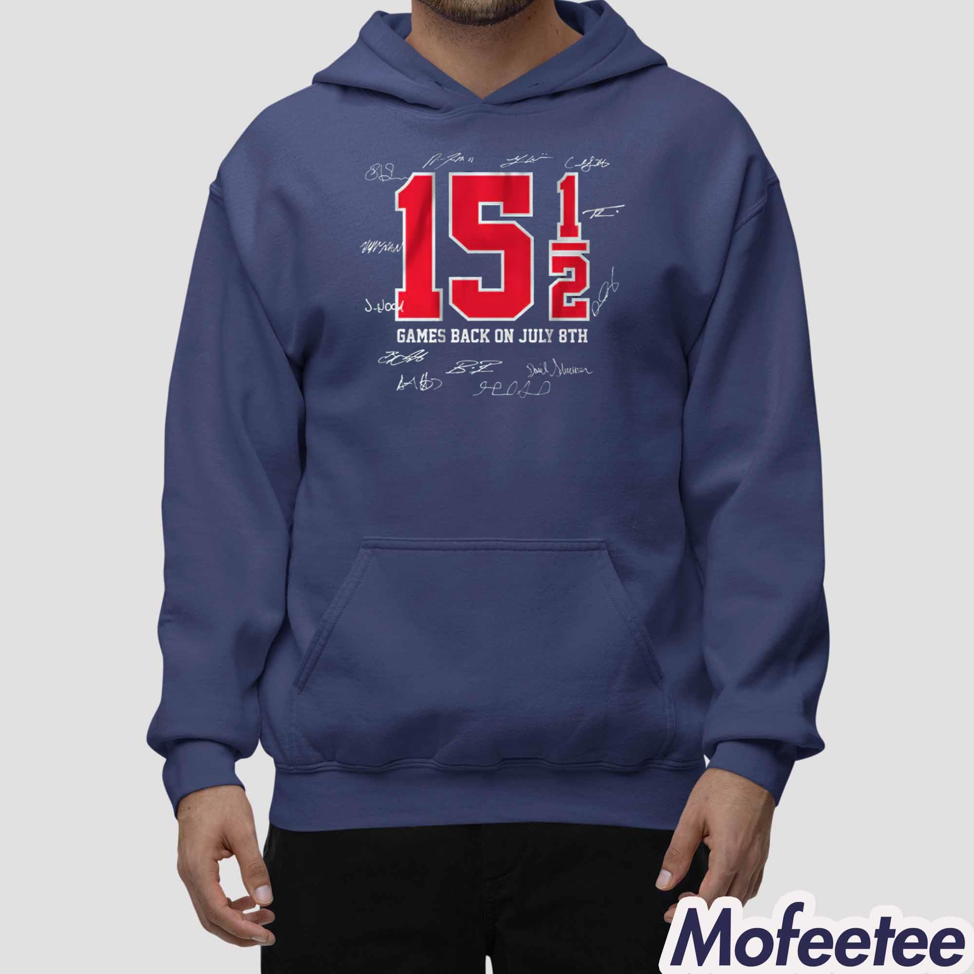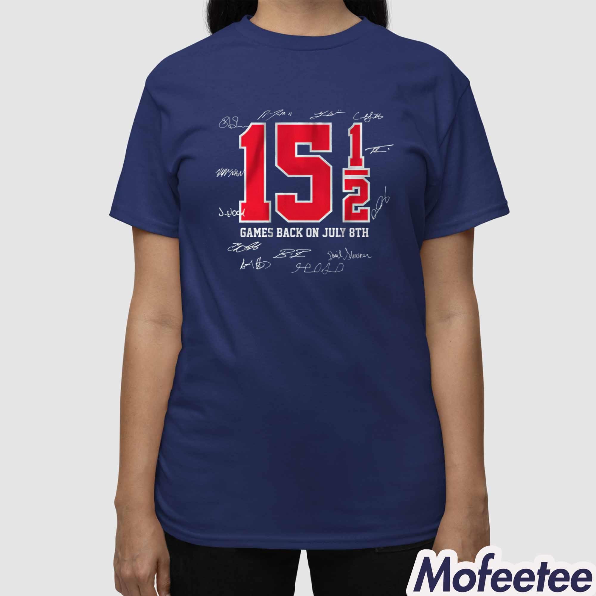 This shirt is designed with both style and comfort in mind. Made from high-quality, breathable cotton fabric, it ensures softness against the skin while keeping durability for long-lasting wear. The front design features a striking red “15 5” graphic with “Games Back On July 8th” text beneath, symbolizing the moment Cleveland fans will never forget. Surrounding the design are authentic printed signatures, adding a collectible and commemorative feel to the piece.