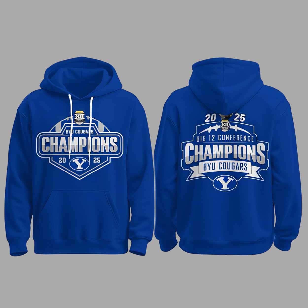 Crafted with high-quality materials, this hoodie offers a soft, warm, and durable feel—ideal for chilly stadium nights, casual days out, or year-round fan support. The bold championship graphics on both the front and back highlight the 2025 Big 12 title, ensuring your pride is visible from every angle. The vibrant royal blue color mirrors the Cougars’ signature look, while the large front pocket adds convenience for carrying essentials or keeping hands warm.
