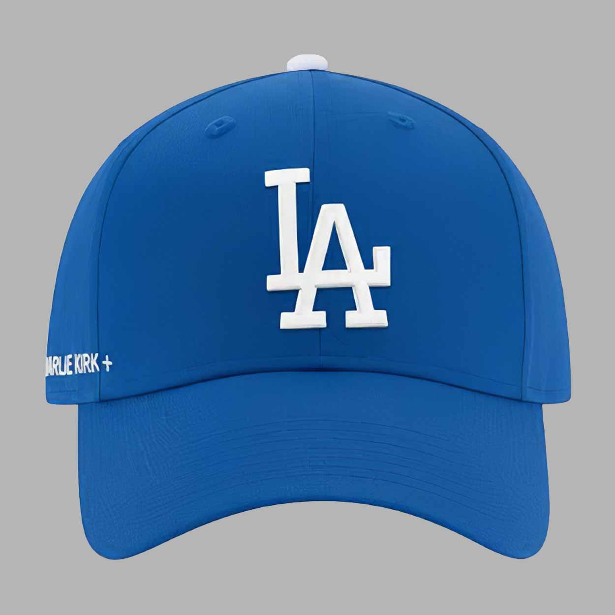 This hat features the iconic dodgers logo prominently on the front, proudly displayed in white for contrast against the bold blue fabric. On the side of the cap, you’ll find “Charlie Kirk” stitched in clean white text, a tribute to one of the most influential voices in the conservative movement. The Blake Treinen design is subtly incorporated into the cap, making it perfect for baseball enthusiasts and fans of the pitcher.