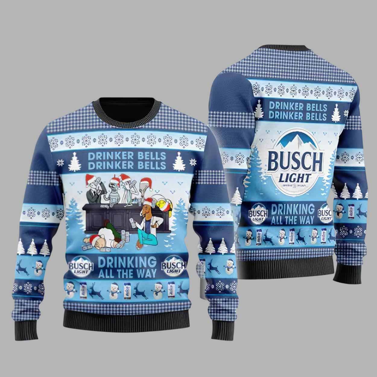 A Perfect Blend of Fun and Festivity Drinker Bells Busch Light Ugly Christmas Sweater