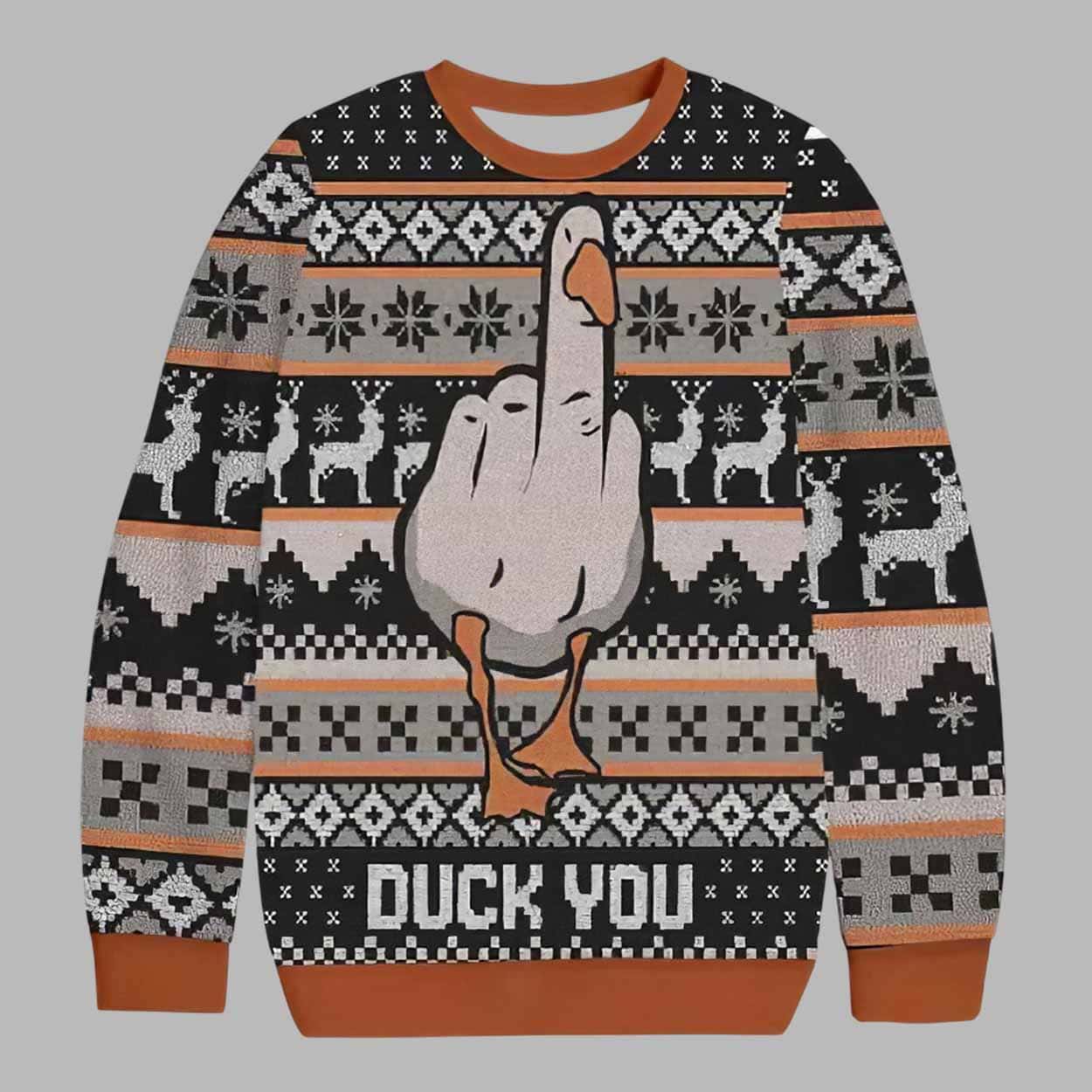 Bring Humor and Bold Energy to the Holidays with the Duck You Middle Finger Ugly Christmas Sweater