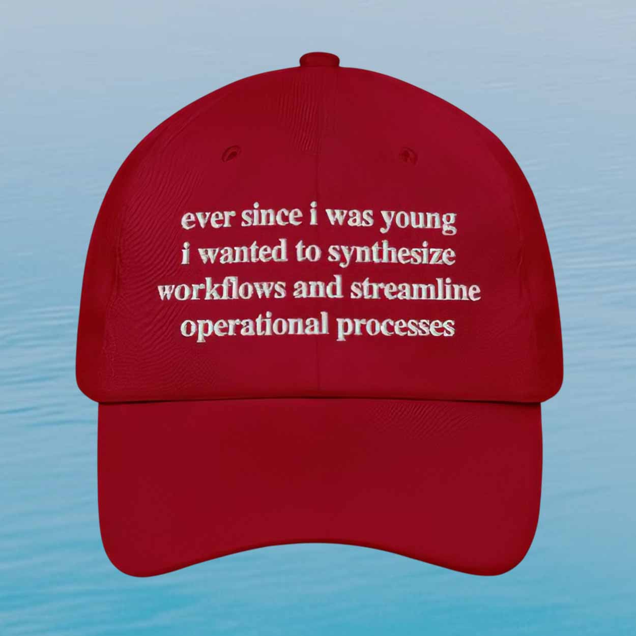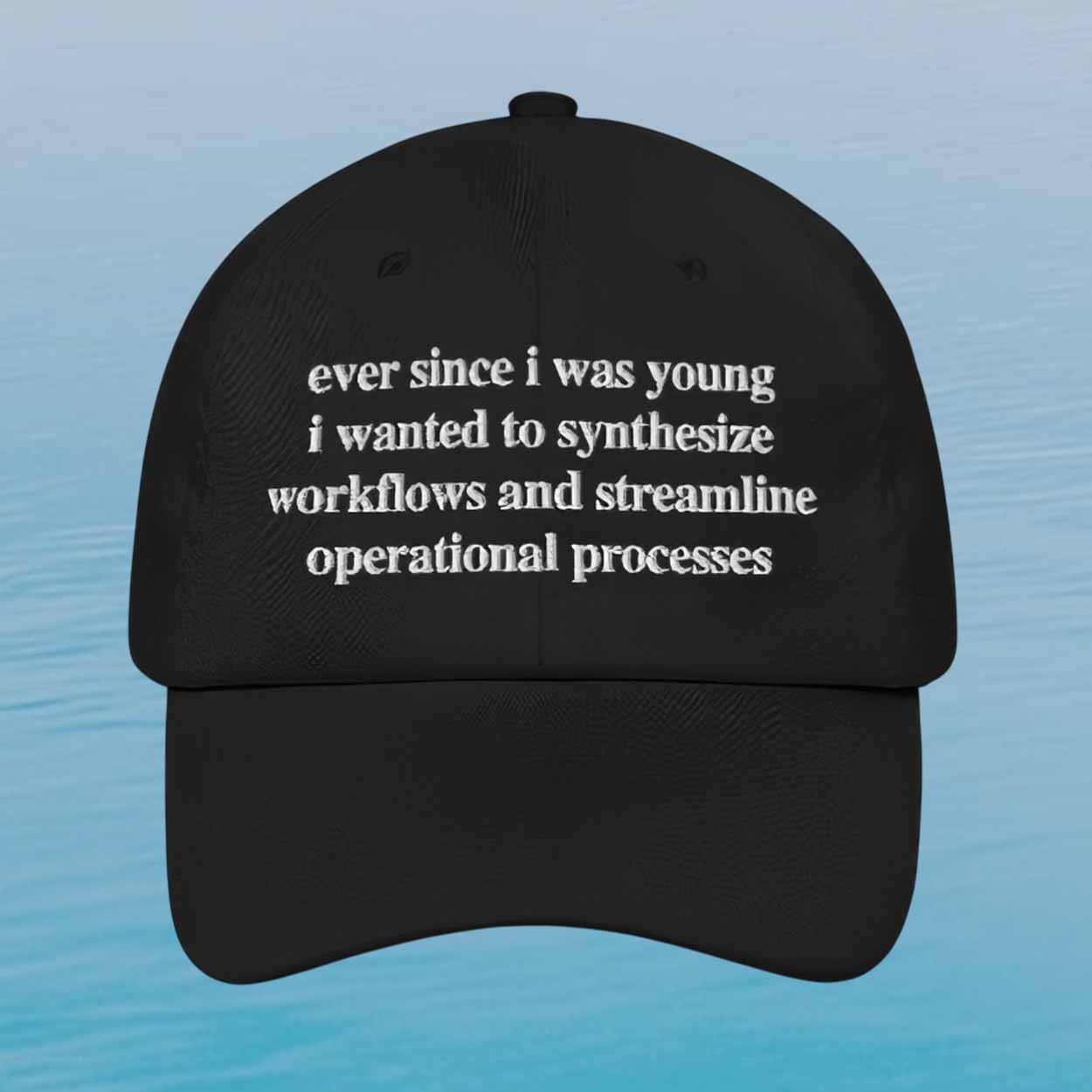 The Ever Since I Was Young I Wanted To Synthesize Workflows And Streamline Operational Processes Hat is the perfect mix of dry humor, modern office culture, and clean everyday style. Designed for people who appreciate witty text-based fashion, this cap turns corporate language into a statement piece that feels clever, unexpected, and instantly memorable.