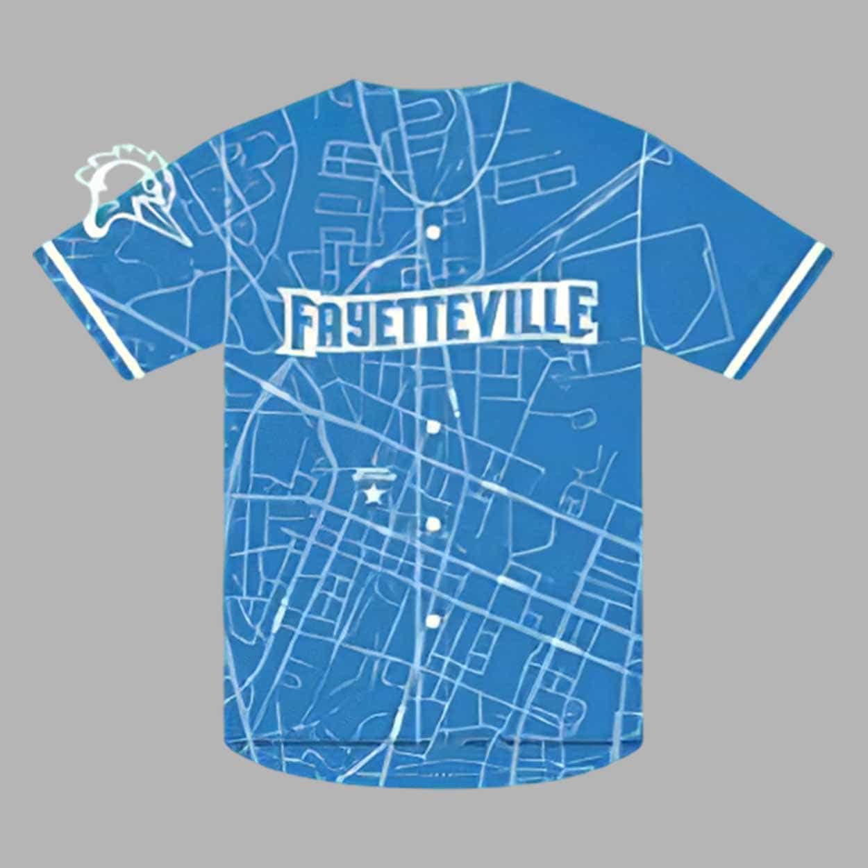 This jersey features a unique, detailed map of Fayetteville on the front and back, with the city’s name prominently displayed on the chest. With its modern fit and stylish look, it’s designed to keep you comfortable and cool, no matter where you are. The jersey is available in various sizes, ensuring the perfect fit for fans of all shapes and sizes.