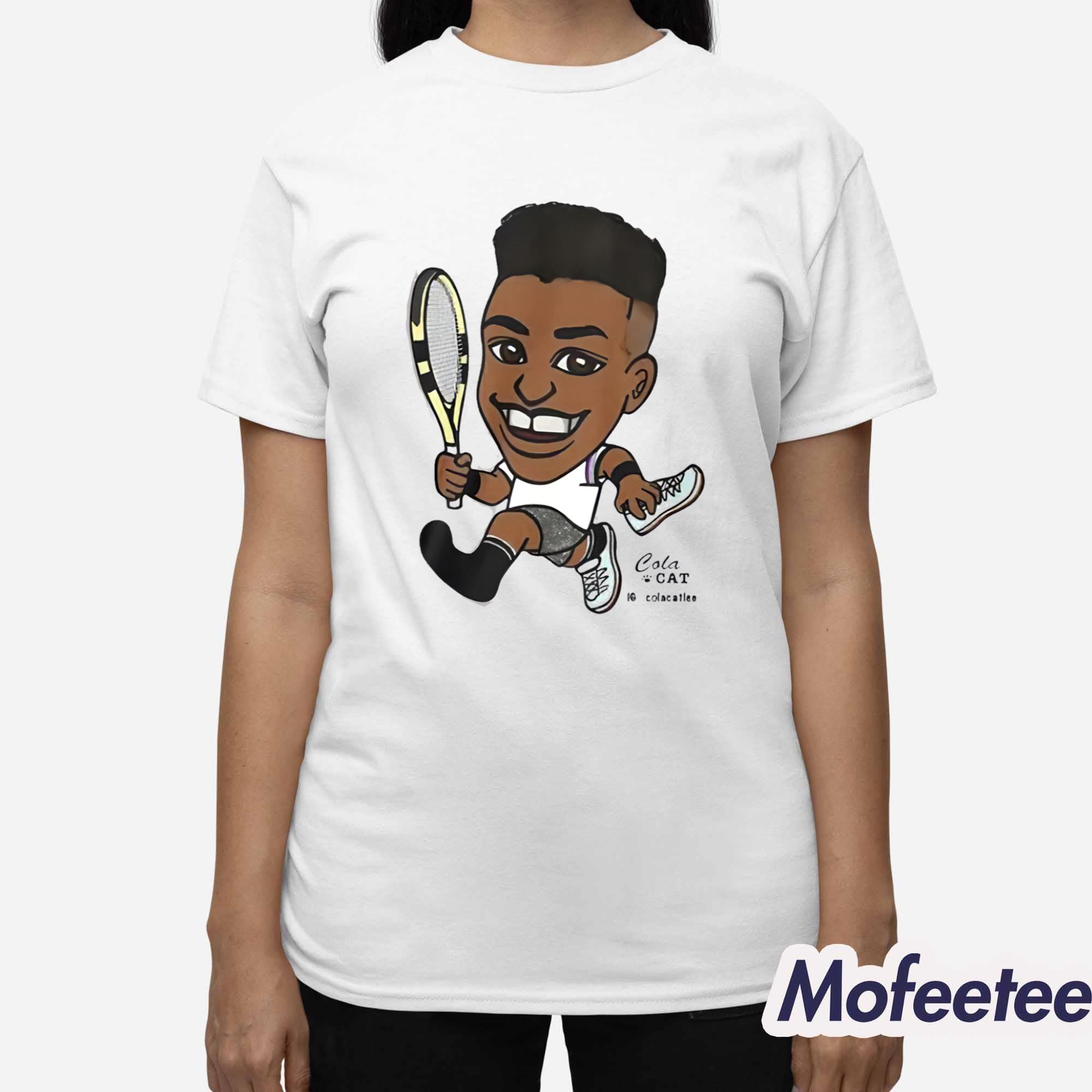 The Felix Auger Aliassime Tennis Shirt is a fun, stylish, and sporty tribute to one of the most exciting tennis players on the court today. Designed with a playful cartoon illustration of Felix holding a racket and showcasing his vibrant personality, this shirt is a must-have for fans who want to celebrate both his talent and charisma.