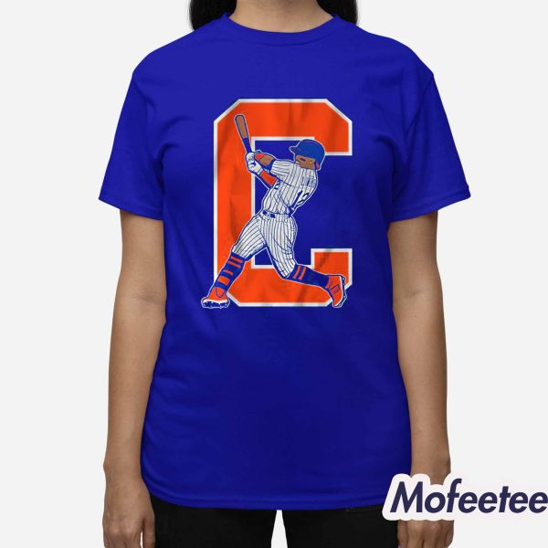 The shirt is crafted from premium materials to ensure both comfort and durability. Made from soft, high-quality cotton, this shirt provides a breathable and cozy fit, whether you’re at the ballpark, hanging out with friends, or simply relaxing at home. The striking graphic design on the front of the shirt shows Lindor in action, taking a mighty swing against the backdrop of the bold letter “C.”