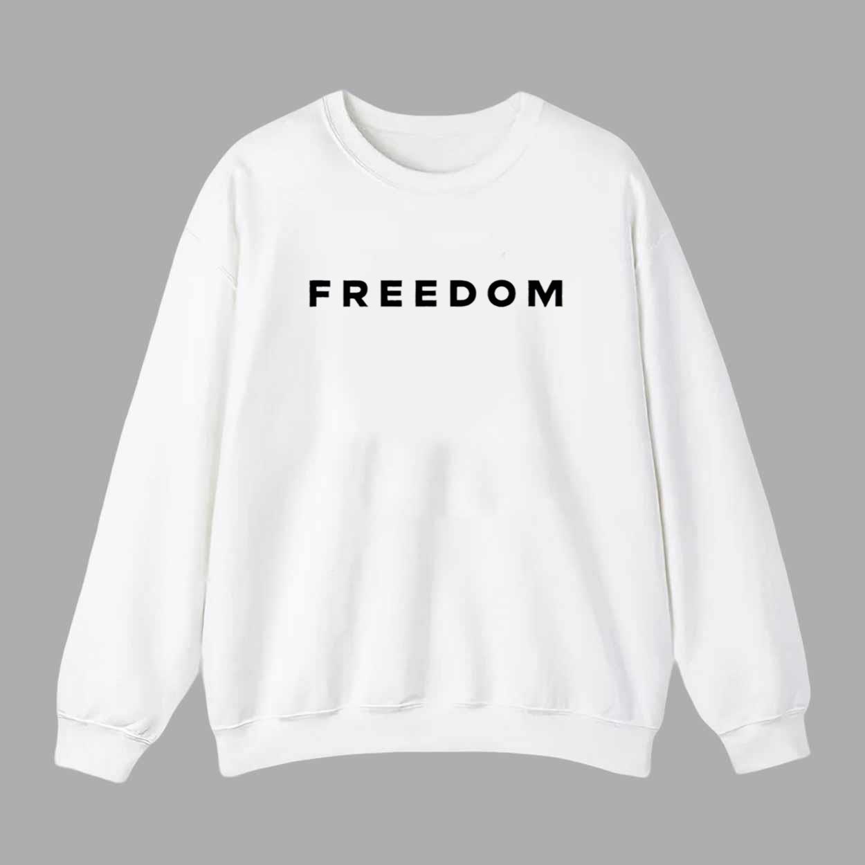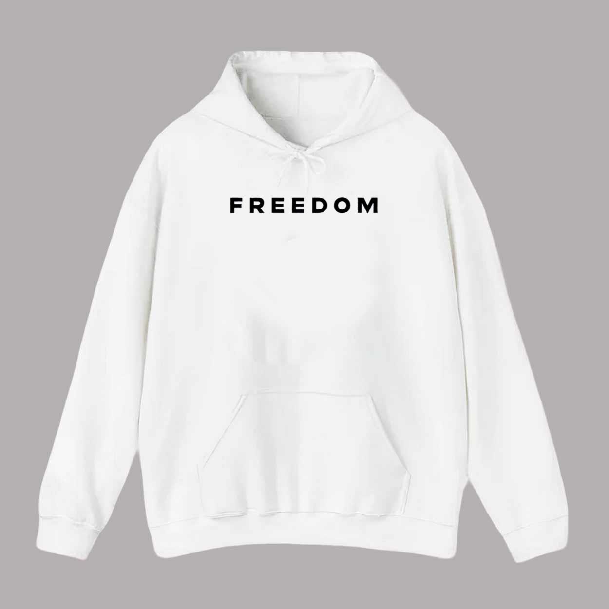 The classic white base enhances the striking black text, making the word “FREEDOM” stand out with bold simplicity. This minimalist design delivers a powerful message while keeping your look clean and modern.