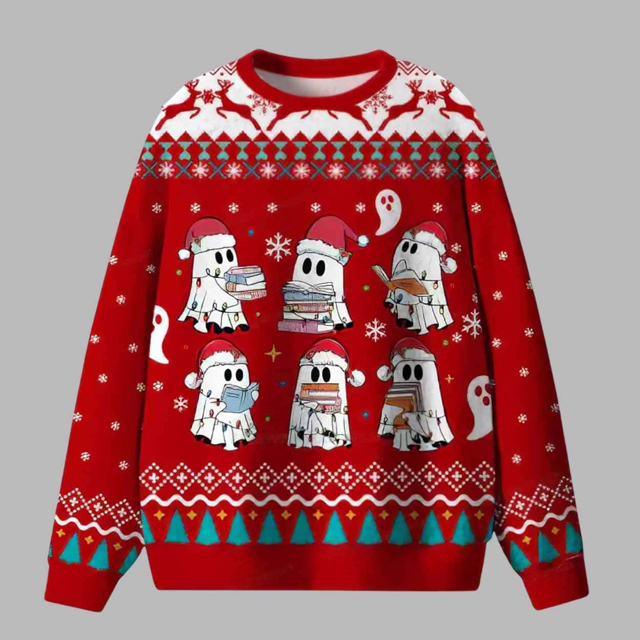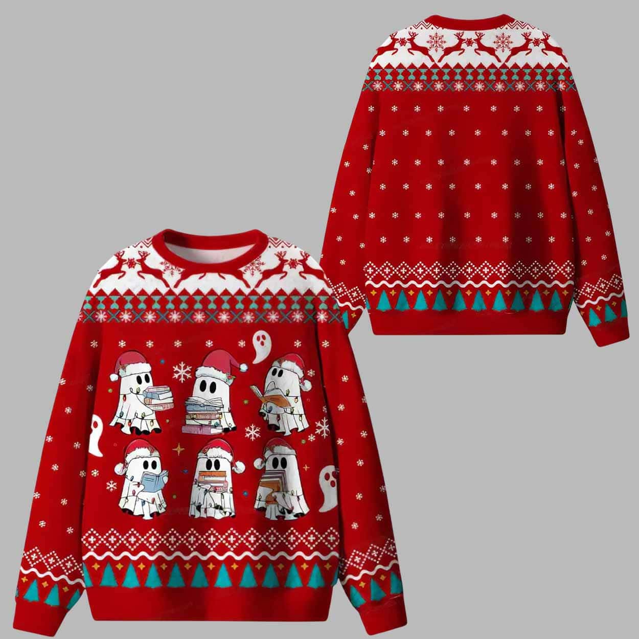 Cozy Up with the Whimsical Ghost Reading Book Club Ugly Christmas Sweater