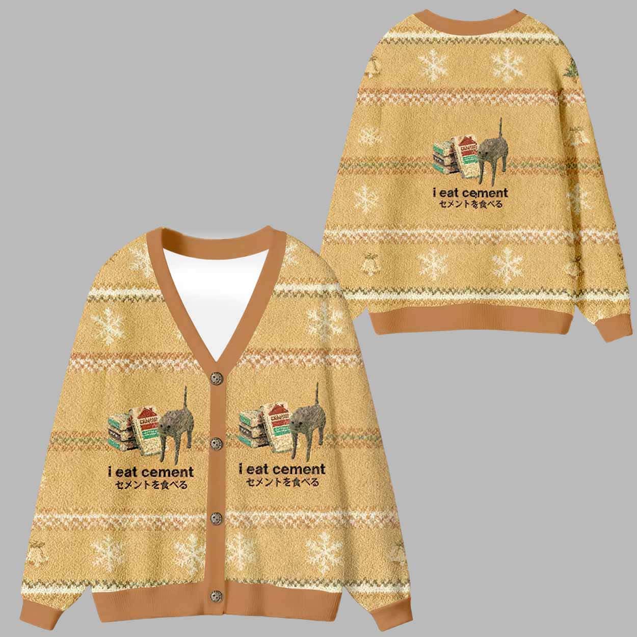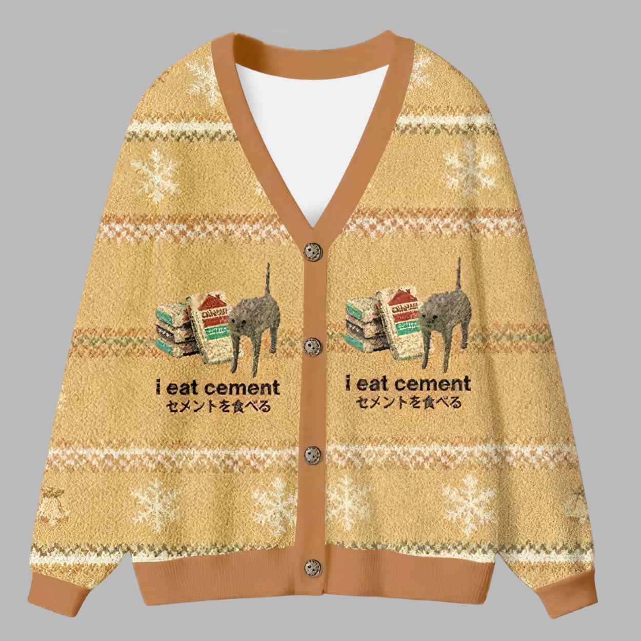 Embrace Quirky Style and Warmth with the I Eat Cement Ugly Cardigan Sweater