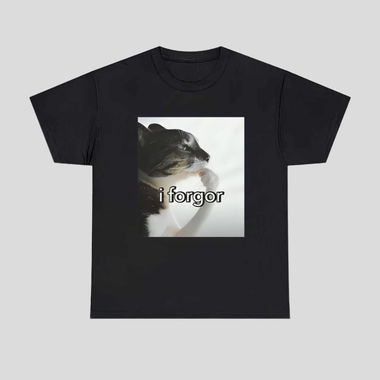 The I Forgor Cringey Shirt is a playful and funny shirt designed for those who enjoy quirky humor. Featuring an adorable cat and the phrase “i forgor,” this shirt is sure to bring a smile to anyone who appreciates internet memes and a good laugh. With its easy-to-read print and simple design, it is perfect for casual days or making a statement among friends.