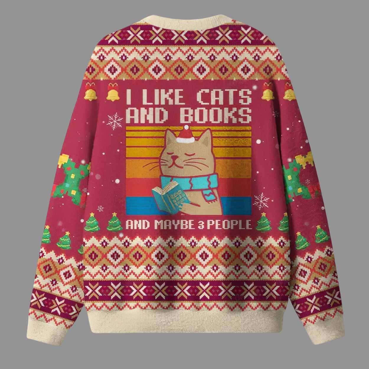 Celebrate the Holidays with the I Like Cats And Books And Maybe 3 People Ugly Christmas Sweater