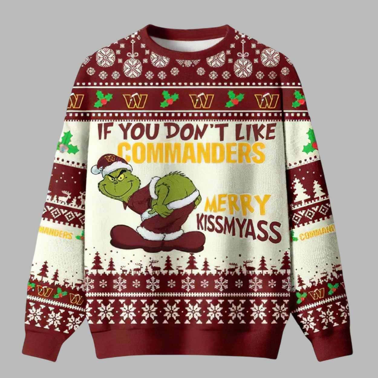 The Ultimate Fan Holiday Statement If You Don’t Like Commanders Merry Kissmyass Grnch Ugly Christmas Sweater