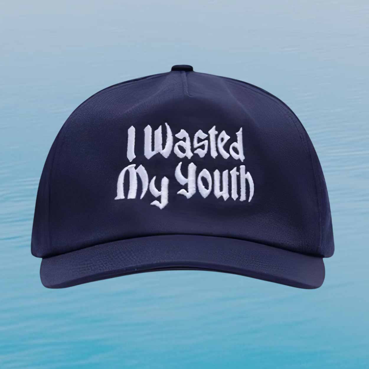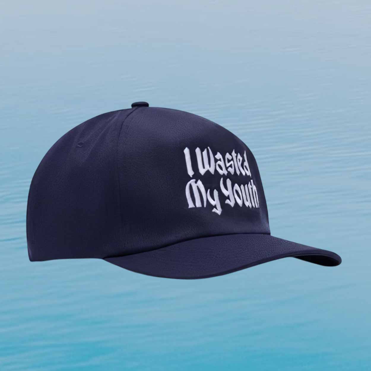The J-Hope I Wasted My Youth Hat is a stylish piece for fans who love expressive fashion with a bold message. Inspired by J-Hope’s artistic energy and the emotional tone behind the phrase, this hat blends music-inspired attitude with everyday wearability. The design stands out with eye-catching gothic-style lettering on a deep navy background, creating a strong visual contrast that makes the statement easy to notice.