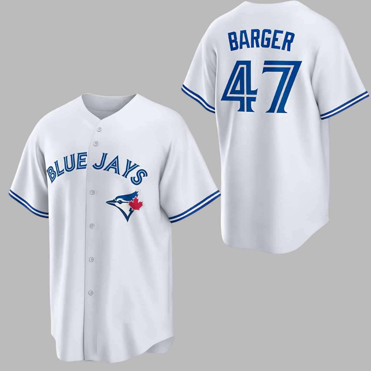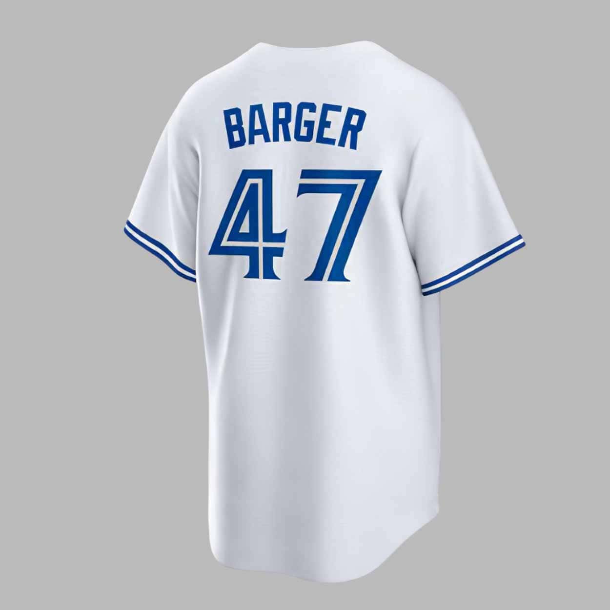 On the back, the jersey features the name “BARGER” and the number 47, making it a personalized tribute to one of the Blue Jays’ key players. Whether you’re celebrating a momentous win or just showing off your support, this jersey lets you wear your allegiance proudly.