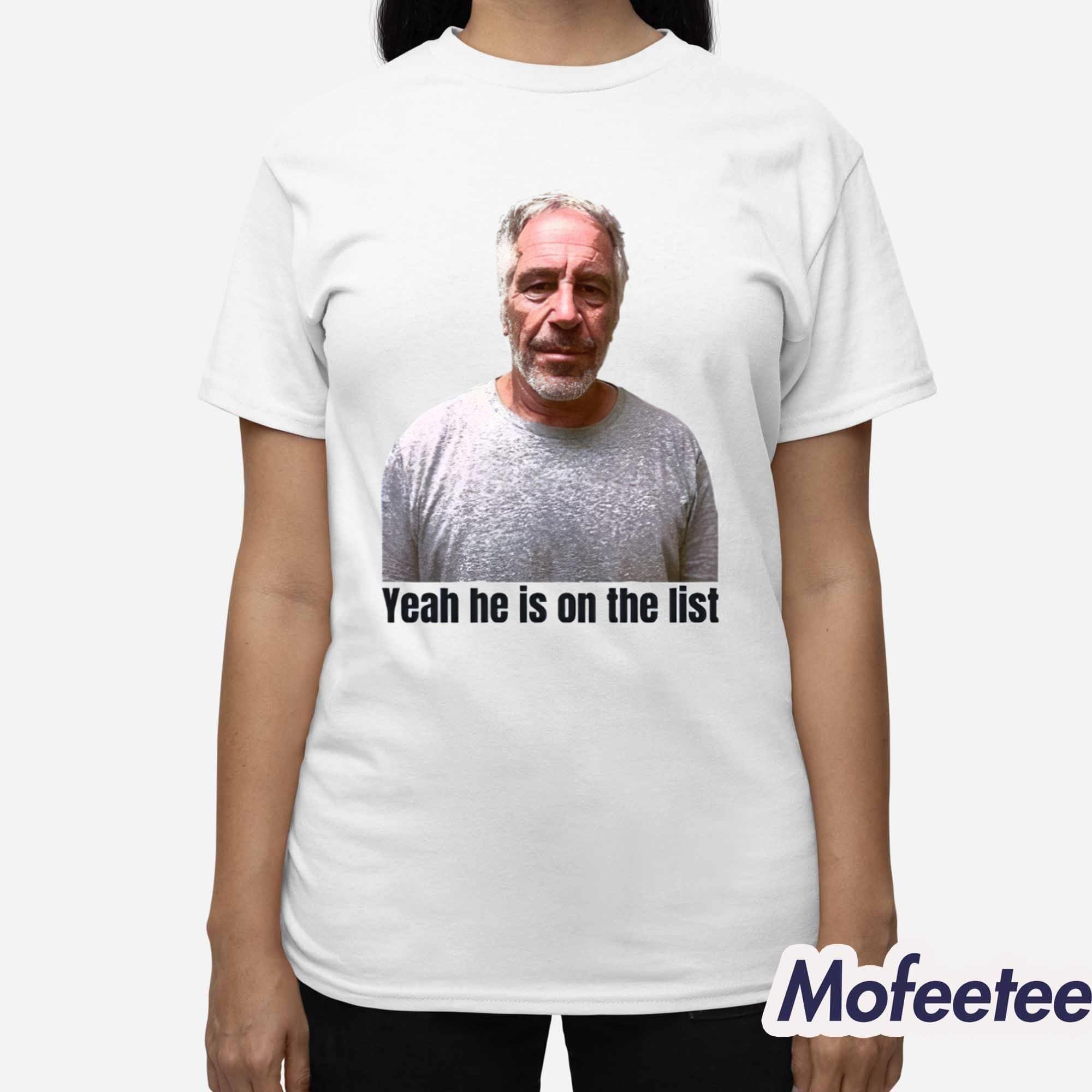 This shirt features a striking print of Jeffrey Epstein’s mugshot above the bold caption: “Yeah he is on the list.” A mix of internet humor and subtle political commentary, this design takes a jab at high-profile controversies in a way that’s both edgy and memorable.