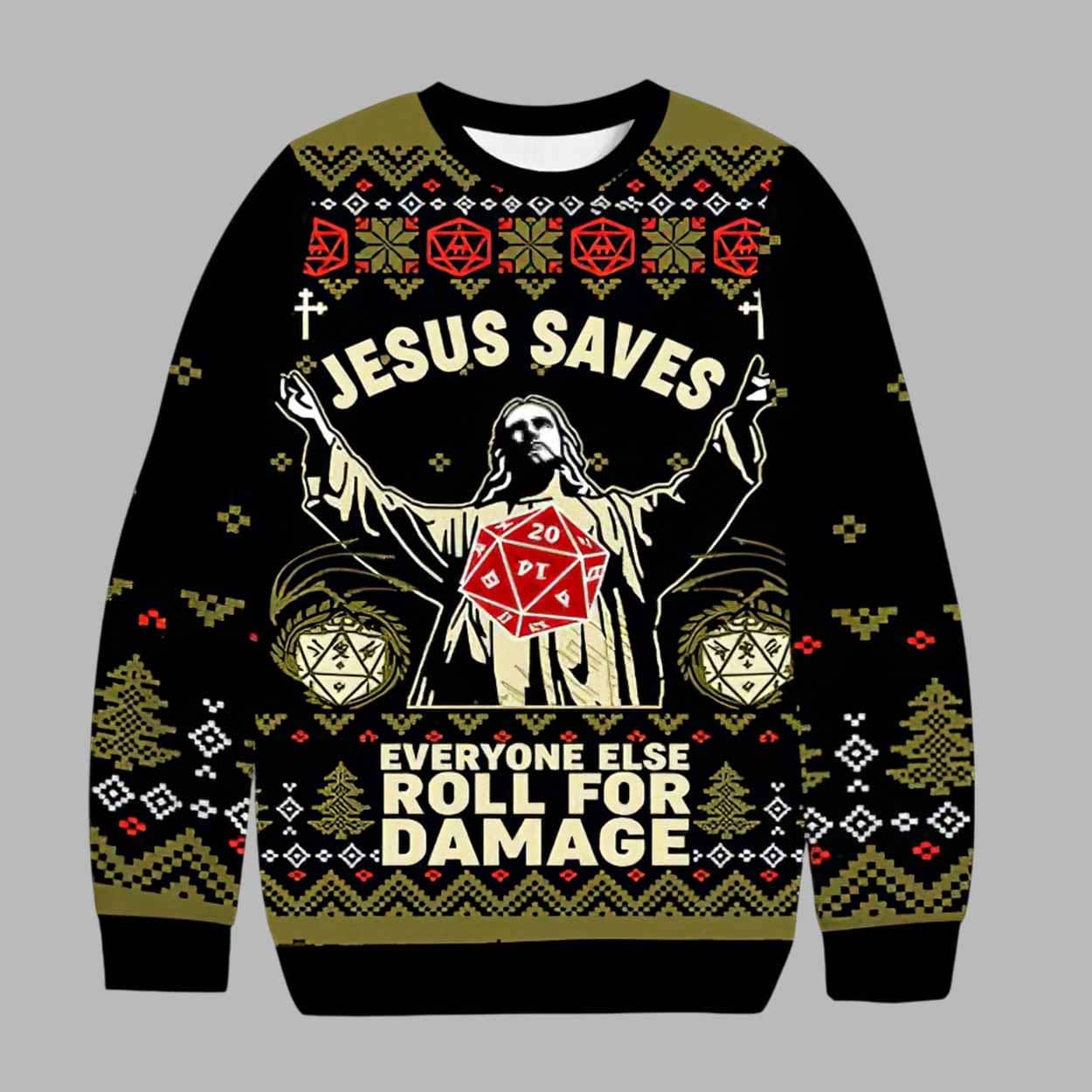 Embrace the Holiday Spirit with the Jesus Saves Roll For Damage Ugly Christmas Sweater
