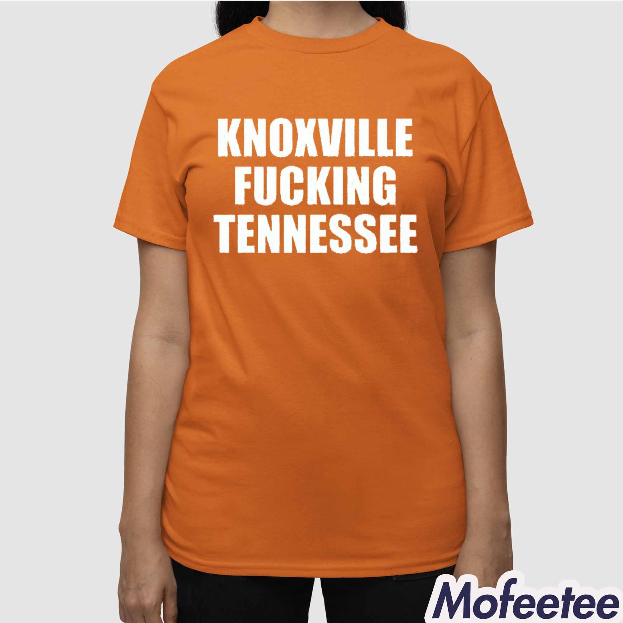 The shirt is a straightforward and powerful design, featuring the words “KNOXVILLE FUCKING TENNESSEE” in large, bold white letters against an eye-catching orange background. The color combination is a nod to the state’s iconic orange hues, often associated with Tennessee sports teams, especially the University of Tennessee Volunteers. The shirt’s high-quality cotton fabric ensures comfort, breathability, and durability, making it perfect for a casual outing or a day at a sports event.