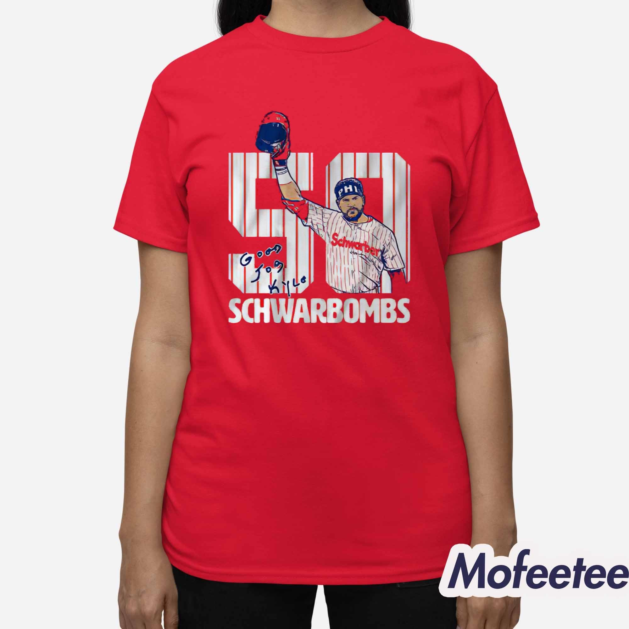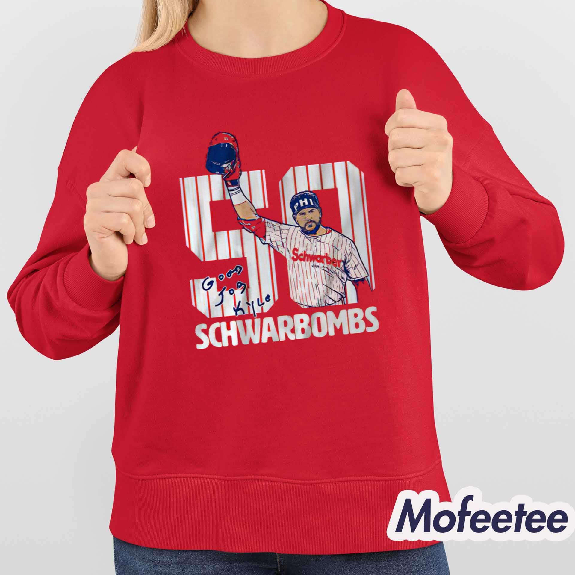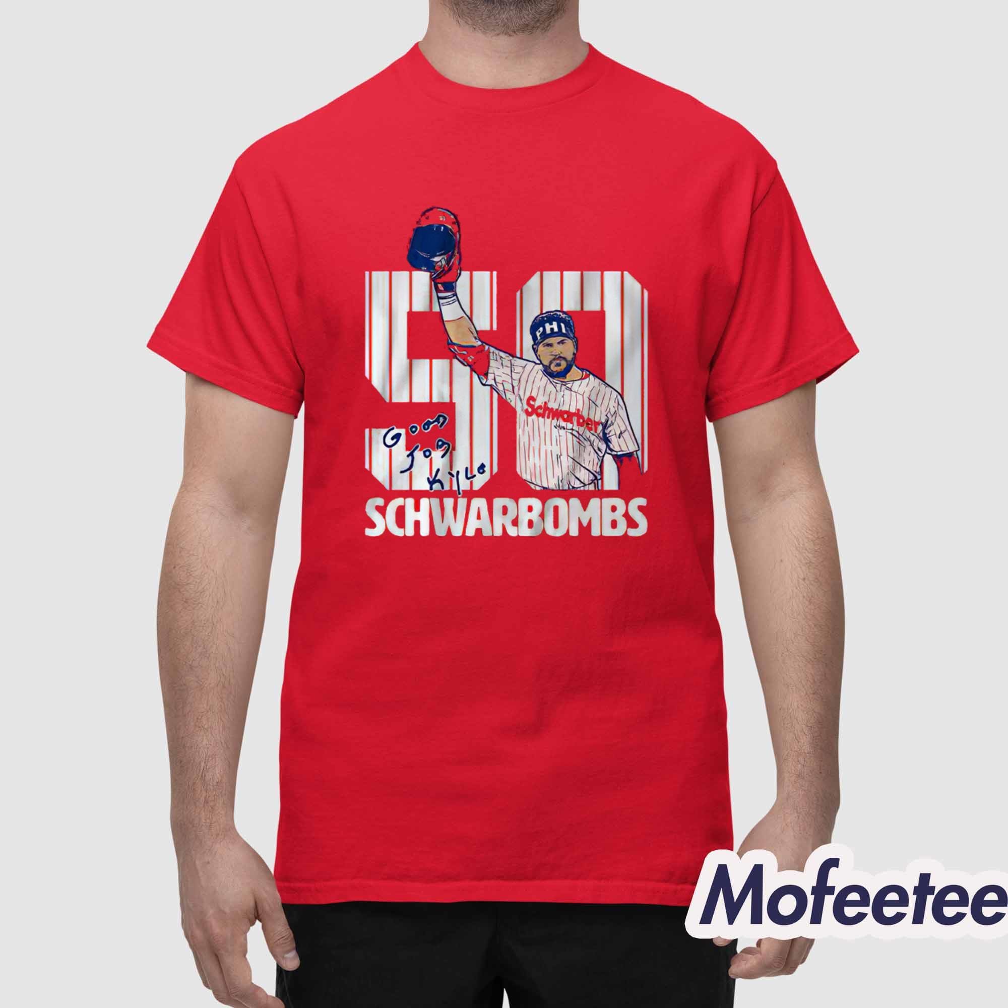 The Kyle Schwarber 50 Schwarbombs Shirt is a tribute to one of the most iconic moments in Philadelphia Phillies history. Schwarber’s remarkable achievement of hitting 50 home runs in a season has left an indelible mark on the team and its fans. This shirt proudly displays the milestone, combining the energy of his powerful swings with bold, creative design.