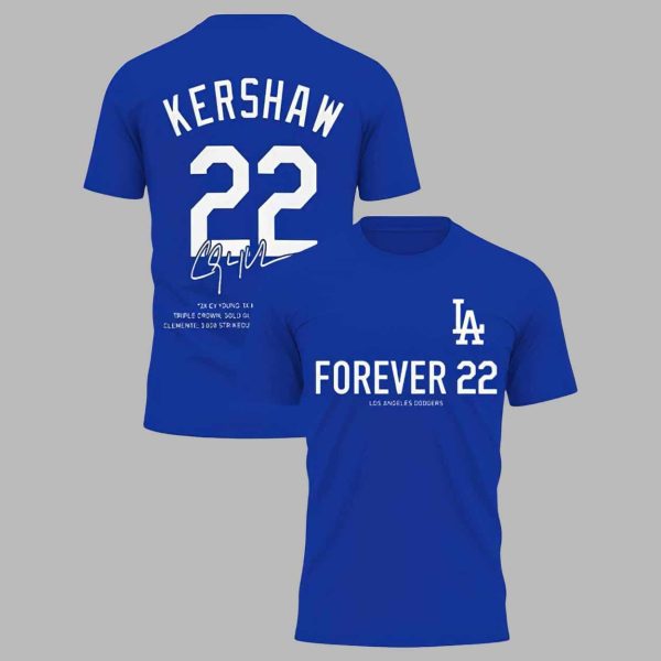 Honor one of the greatest pitchers in baseball history with the LA Dodgers Clayton Kershaw Forever 22 World Series Shirt. This exclusive design pays tribute to Kershaw’s incredible career, celebrating his impact, passion, and loyalty to the Dodgers. Whether you’ve followed every pitch or simply admire greatness, the shirt lets you wear your pride for a true legend who defined an era of baseball excellence.