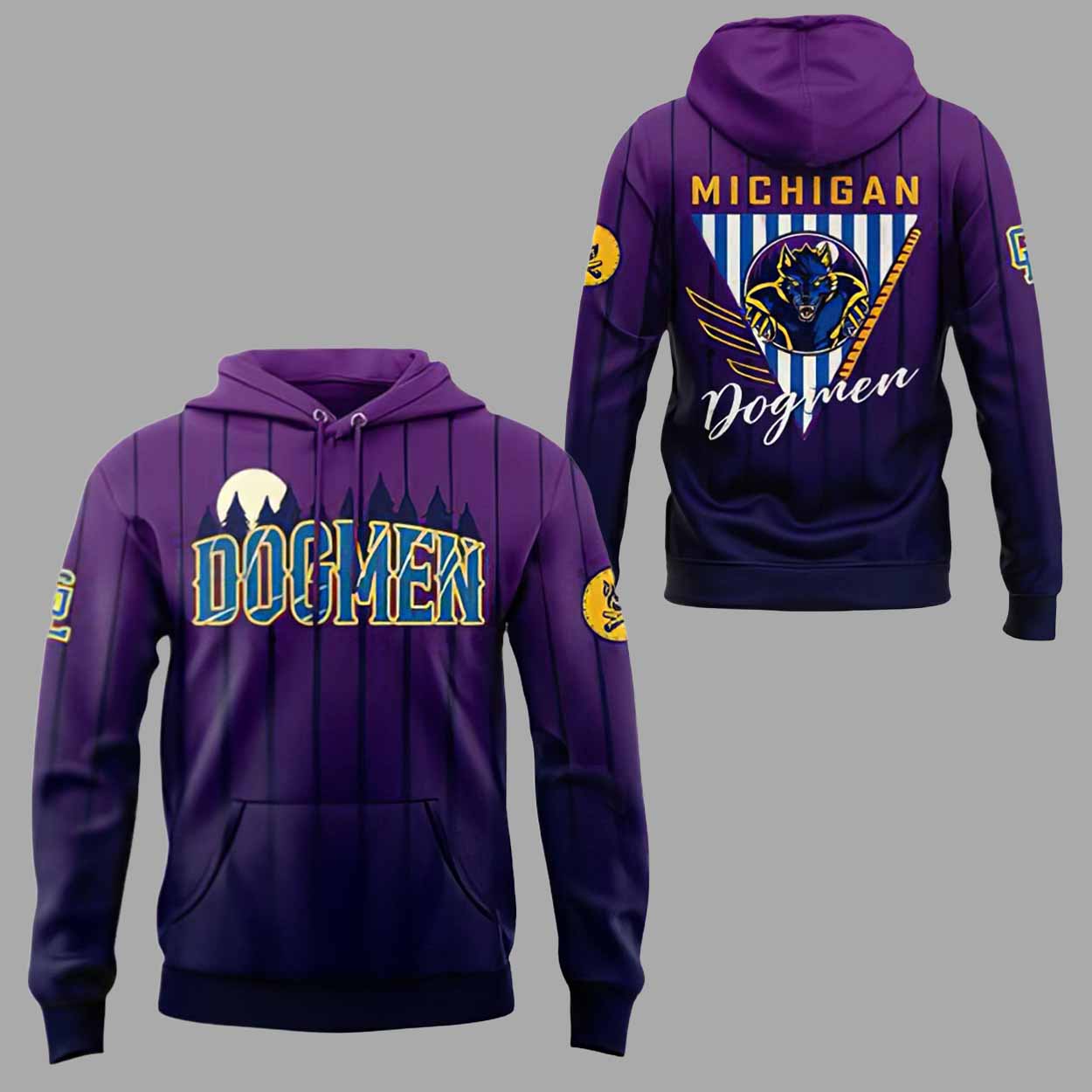 On the back, the design becomes even more striking, featuring a large Dogmen graphic paired with “Michigan Dogmen” text. The imagery is sharp and well-balanced, creating a commanding presence from every angle. Together, the front and back designs make this hoodie visually engaging while staying cohesive and wearable.