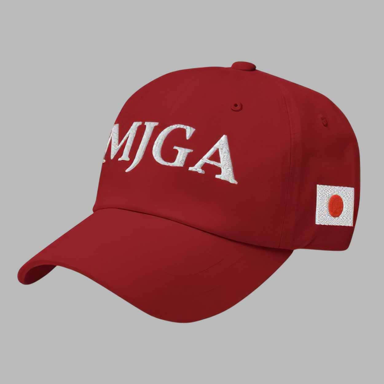 The hat features a vibrant red color that captures attention instantly, paired with striking white embroidered letters “MJGA” across the front. The design is simple yet powerful, representing resilience and optimism — a nod to the idea of renewal and greatness. Its structured shape and bold typography give it a polished look that complements both casual and smart-casual outfits.