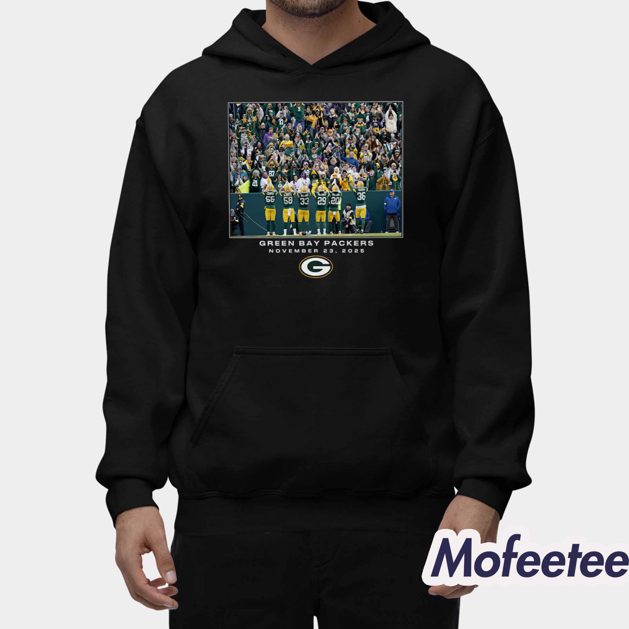 The shirt features a high-resolution image of the Green Bay Packers celebrating a major moment during Week 12. The image is framed with bold text that reads “Green Bay Packers November 23, 2025,” ensuring the moment is immortalized forever. Whether you watched the game or simply appreciate the significance of the event, this shirt lets you carry that moment with you.
