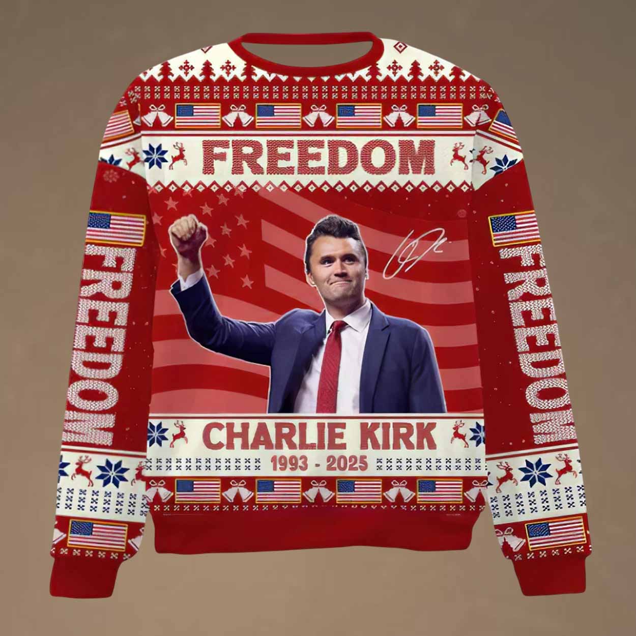 Show Your Support in Style Personalized Freedom Charlie Kirk Ugly Christmas Sweater