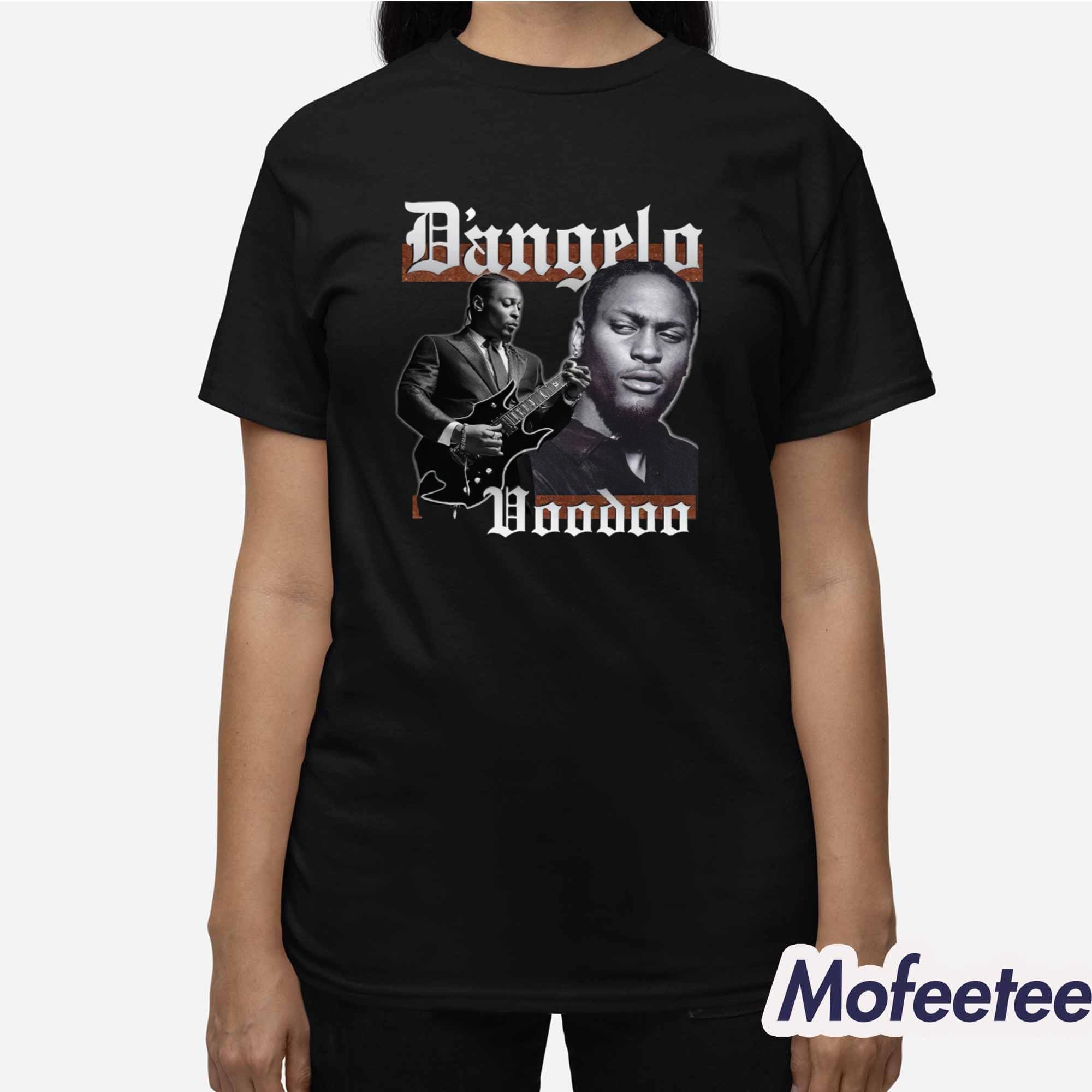 This shirt is crafted to last, with a soft feel against your skin and a design that won’t fade or crack over time. The shirt features a stunning graphic of D’Angelo, accompanied by the bold, stylized text “Doodoo,” paying homage to his classic album, Voodoo. The black shirt acts as a perfect backdrop, ensuring the vibrant images and text pop, making it the ideal choice for music lovers and collectors alike.
