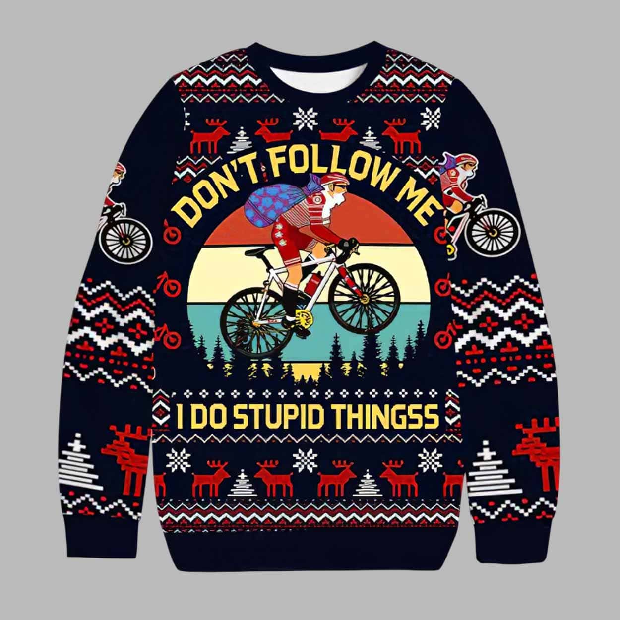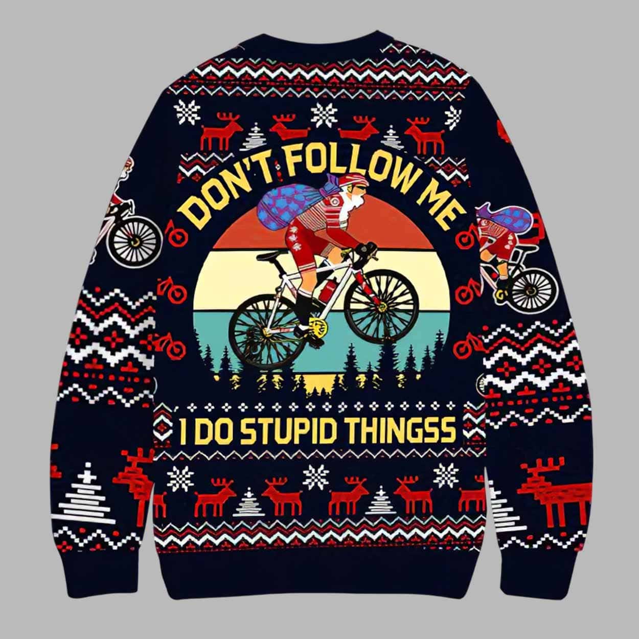 The Perfect Gift for Bold Holiday Spirits Santa Cycling Don’t Follow Me I Do Stupid Thingss Ugly Christmas Sweater