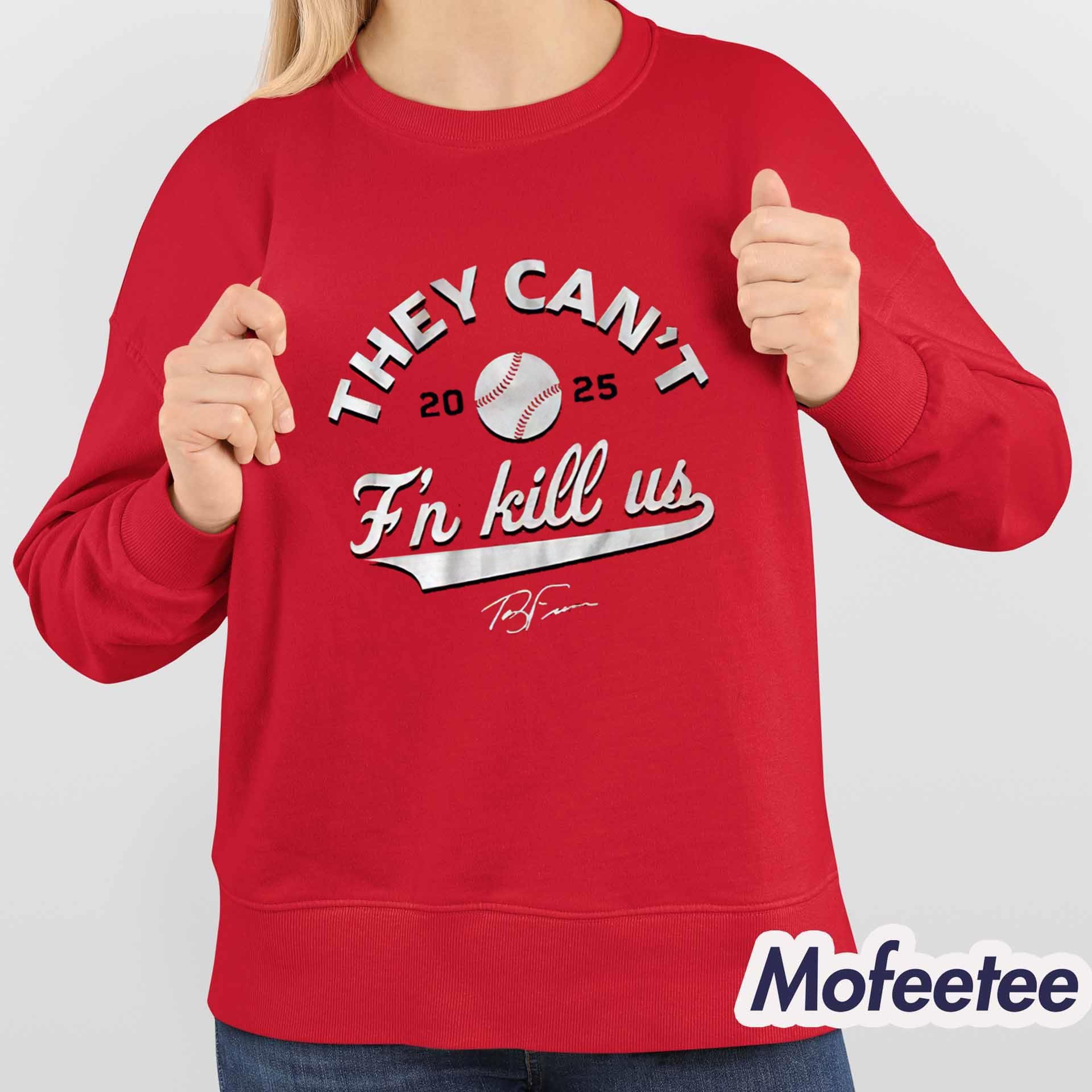 Show your loyalty, pride, and fighting spirit with the Terry Francona They Can’t F’n Kill Us Shirt. With its bold design, comfortable fit, and durable quality, this shirt is perfect for any fan who refuses to quit—on or off the field.