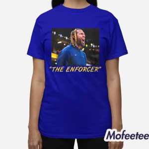 The Enforcer Shirt showcases a compelling graphic that captures attention at first glance. The front of the shirt features a vibrant image of an individual with braided hair, radiating power and charisma while dressed in a stunning blue outfit. The backdrop of soft, blurred lights accentuates the focus on the central figure. To complete its bold personality, the text THE ENFORCER is prominently displayed in bold yellow letters below the graphic, ensuring that the design is as commanding as its name.