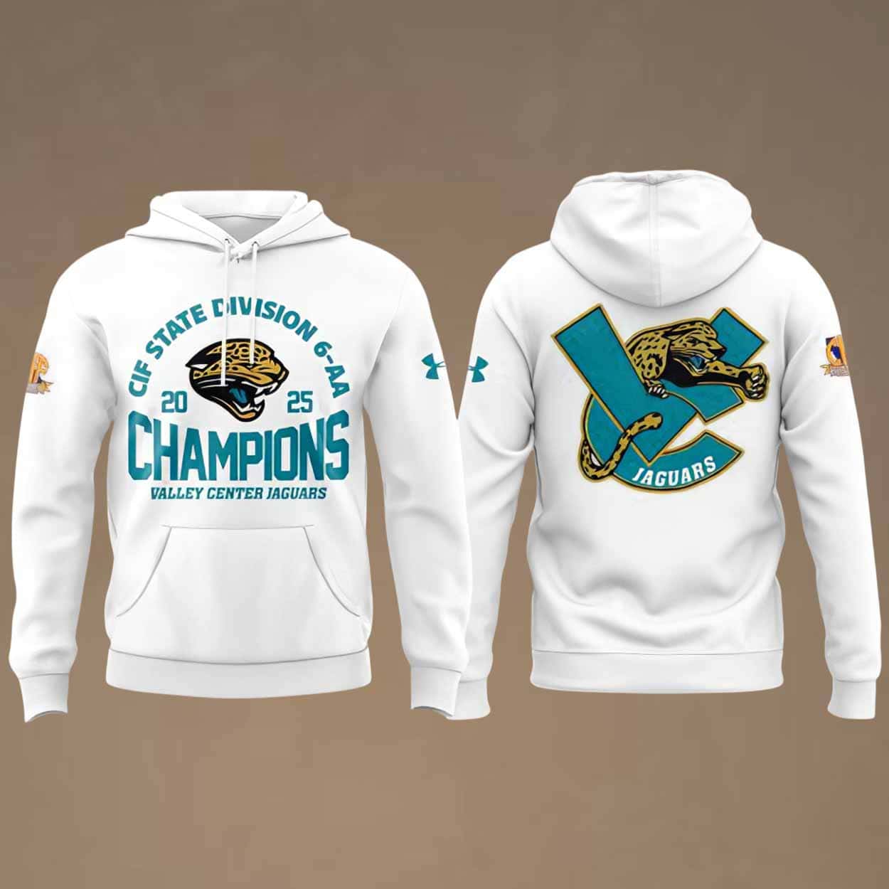 The Valley Center Jaguars CIF State Division 6-AA Champions Hoodie is the perfect way to honor an unforgettable 2025 season. Designed for proud fans, families, and athletes, this special-edition hoodie captures the excitement of the Jaguars’ championship run with bold graphics, premium comfort, and unbeatable team spirit. Show your pride and relive the victory every time you wear the hoodie.