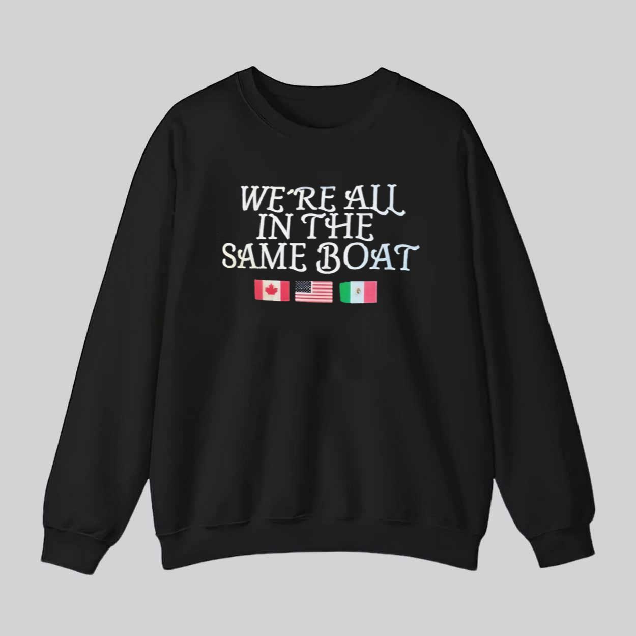 The We’re All In The Same Boat Flags Shirt is a unique and meaningful piece of apparel that promotes unity and togetherness. This shirt features a powerful message that resonates with people from different backgrounds, emphasizing that despite our differences, we are all in this journey of life together. The design includes the flags of Canada, the United States, and Mexico, symbolizing the unity among these neighboring countries.