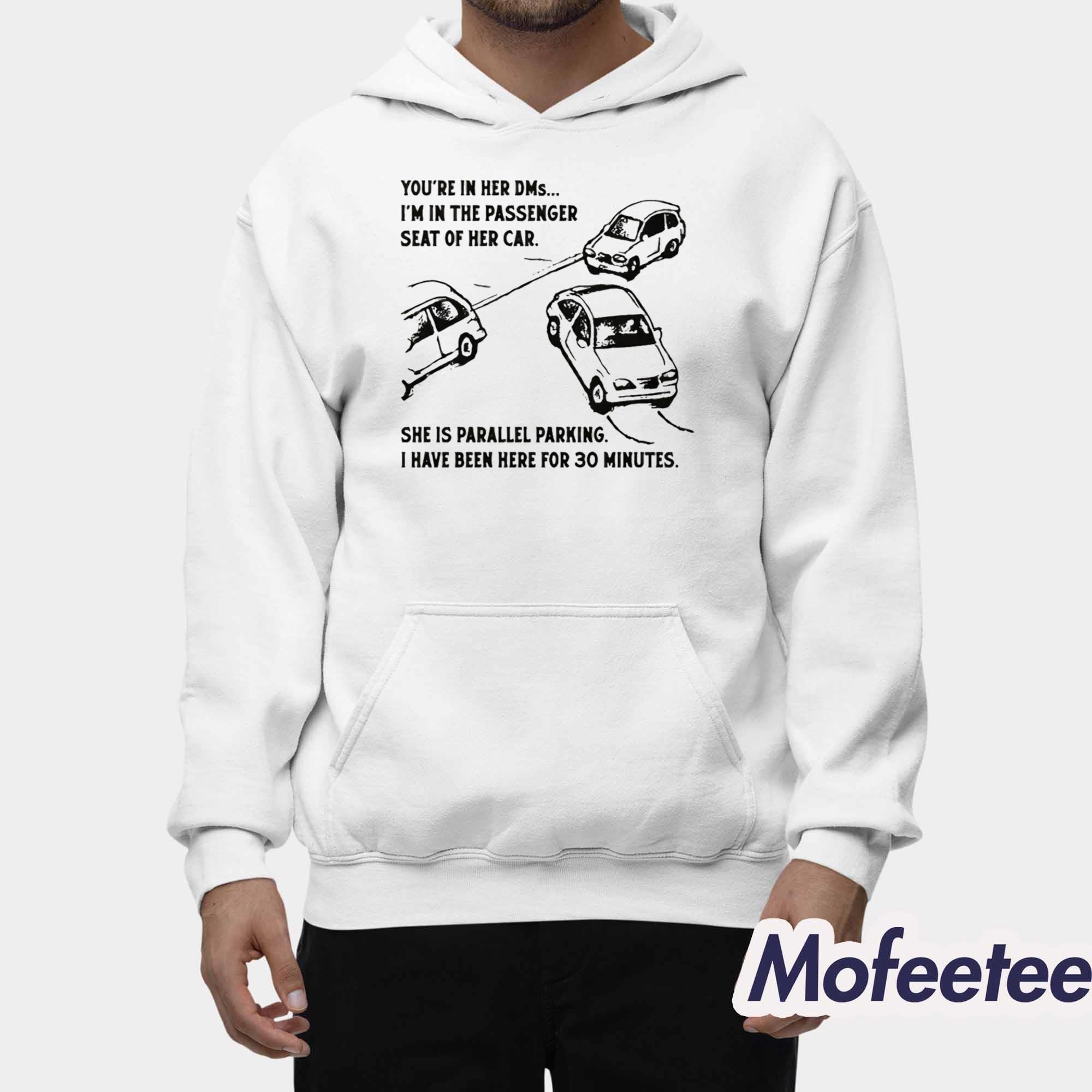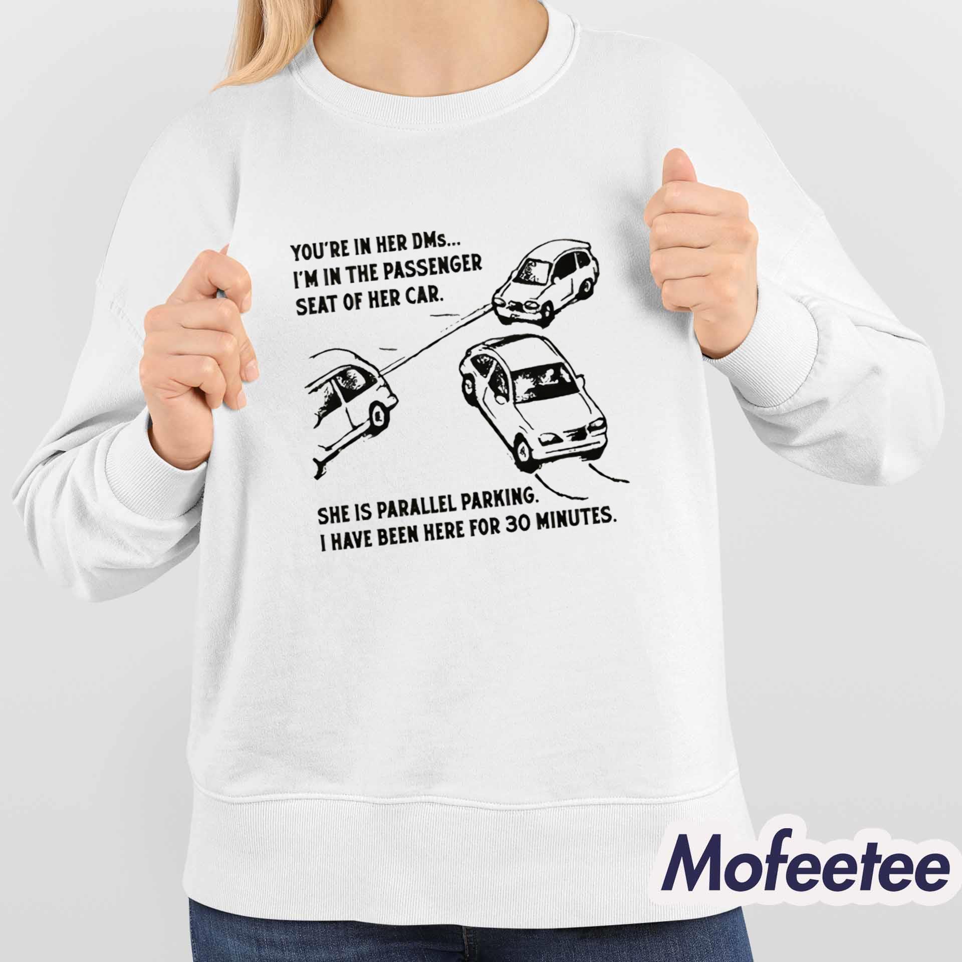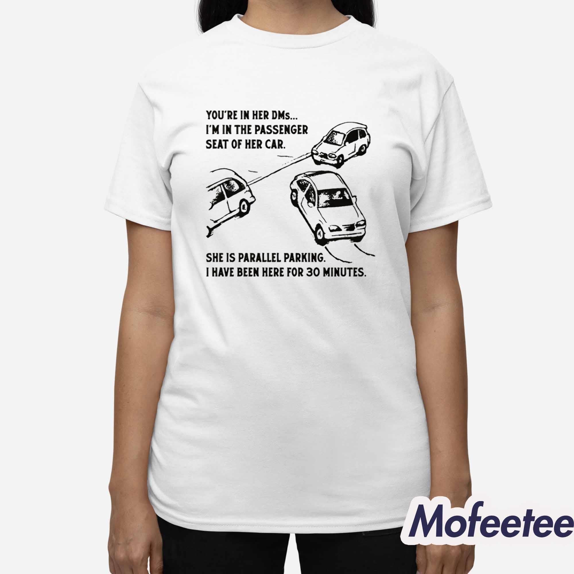 Elevate Your Style with You’re In Her DMs I’m In The Passenger Seat Of Her Car She Is Parallel Parking I Have Been Here For 30 Minutes Shirt